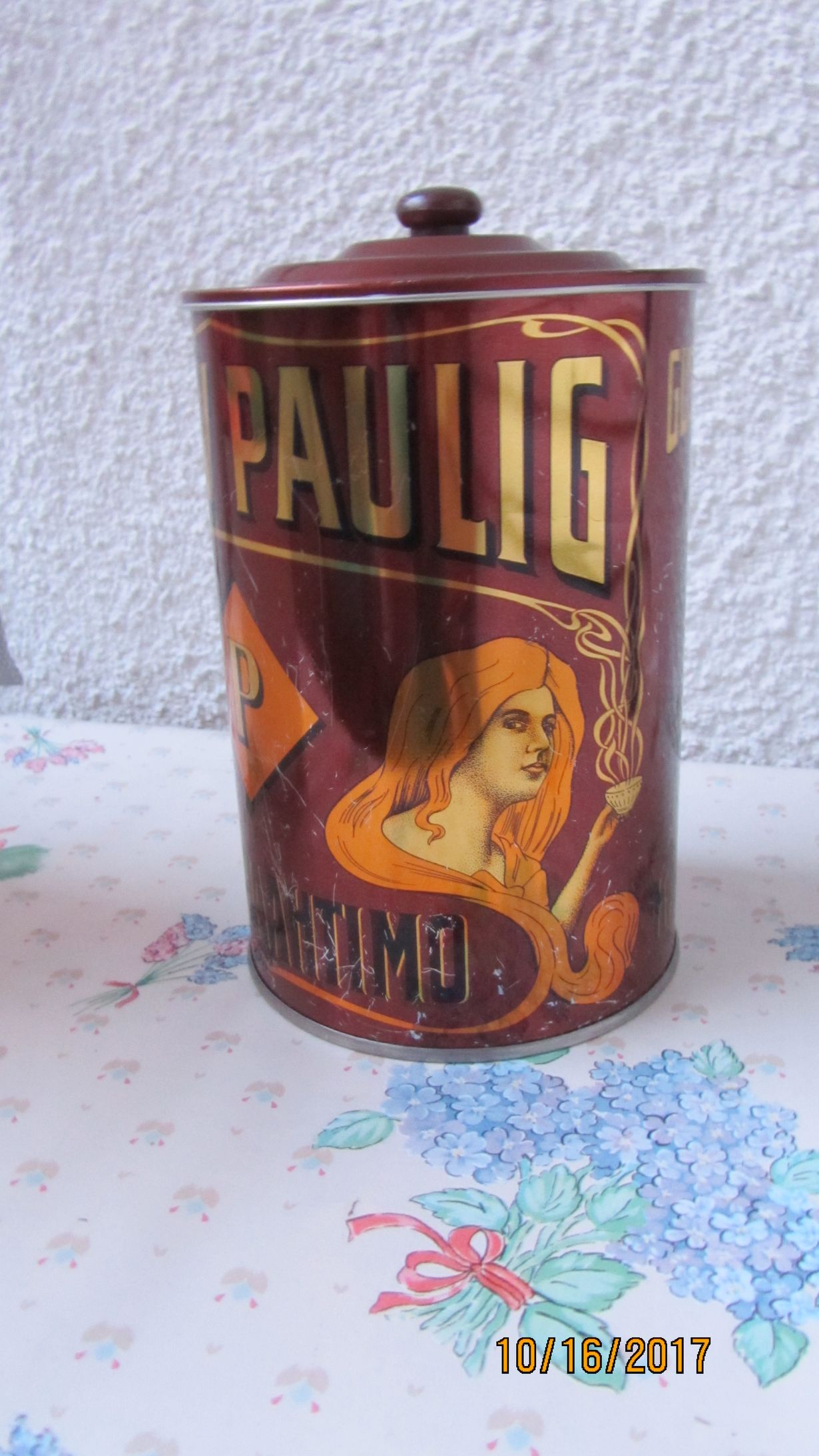 Pauligin peltitölkkiin, jonka malli ja koristelu ovat vuodelta 1904. Sama malli oli