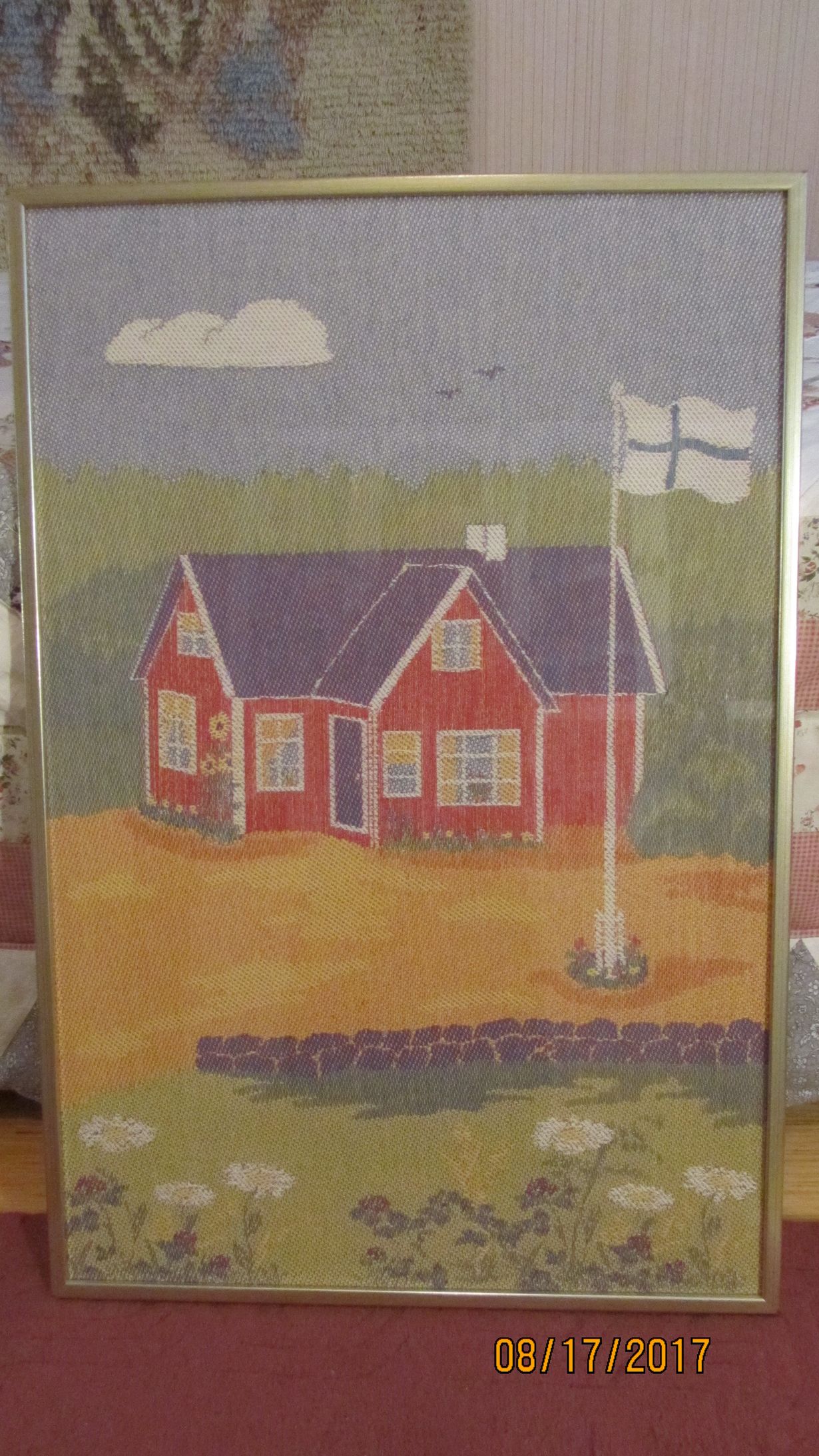 Oikeasti taulussani on mökkikeittiöpyyhe. Se oli joskus ruotsalaisen tekstiilitehtaan