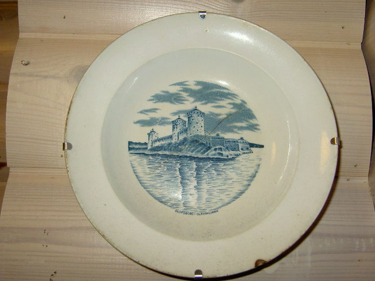 Nyt tämä lautanen koristaa kesämökkimme keittiön hirsiseinää.