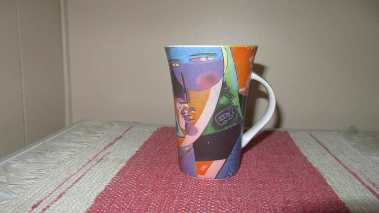 Voitin tämän mumkin eräistä arpajaisista.Siitä lähtien se on ollut päiväkahvimukini.Kesällä keinussa istuessa ja talvella tuvassa hyvän keksin seurassa.Nyt muki alkaa olla jo niin kulunut,että pittää miettiä uuden mukin hankintaa.