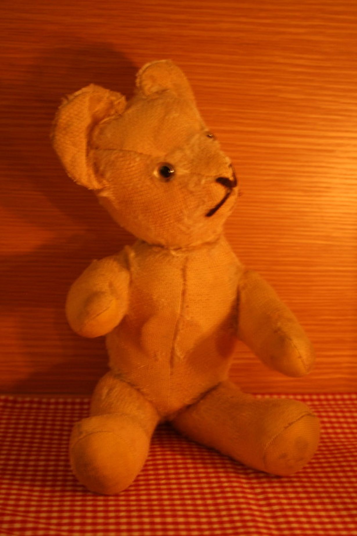 Sain saksalaisen nalleni 3-vuotiaana 59 vuotta sitten. Minun lisäkseni nallea ovat hellineet ja halineet tyttäreni ja lapsenlapseni niin paljon, että karvat ovat lähes tyystin kuluneet, eikä murinakaan enää onnistu vatsasta painamalla.