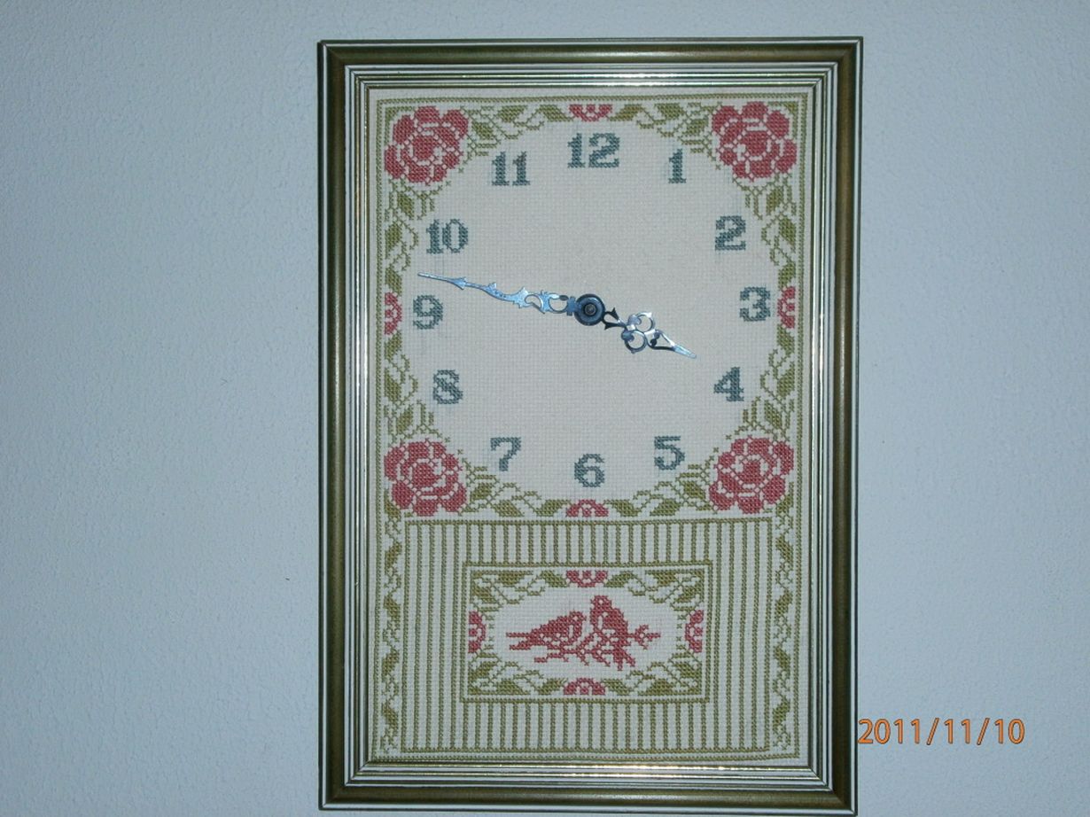 Tämä ihana arki: seinäkello Oma tekemä 10.11.2011 klo 16:17 Olen kirjonut kellon taustan joskus parikymmentä vuotta sitten,kellolla on siis enemmän tunnearvoa kuin rahallista.