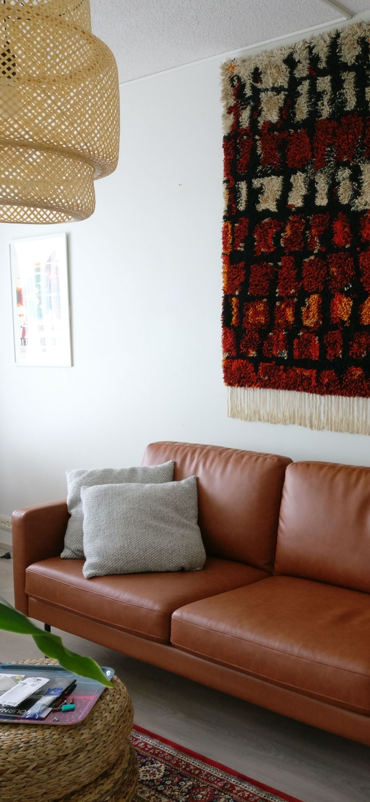Kuvassa näkyy ensimmäisen ei-opiskelijakotini sohva ja sen päälle tarkoin valitut tyynyt. Nykyään tyynyjen päällä on jo eri päällinen, mutta muistorikkaat ja suloisen pehmoiset villapäälliset tuntuvat edelleen uuden kankaan alla, kun tyynylle painaa pään tai sitä halaa. Ehkä jotain vienoa läikähtäneiden illanistujaistarjoilujen tai ennen juhliin lähtöä suihkautetun hajuvedenkin tuoksua voi tarkkanenäinen havaita...