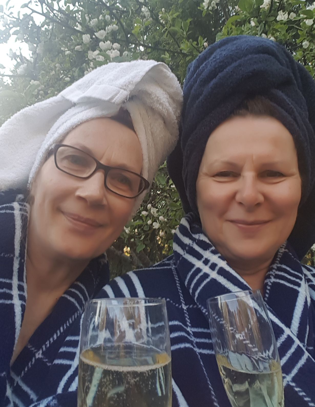 Kesänloman alkajaisiksi saunottiin, nautittiin lasilliset kuohuvaa ja juteltiin elämän iloista ja elämän kupruista. Ihan ihku parasta kesän alkua.