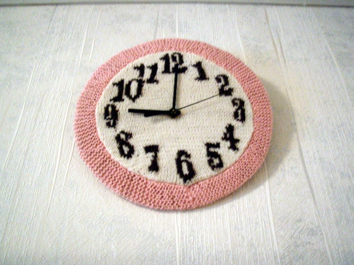 Tämä kello ei ole oma, vaan tyttären. Hän on omaksunut äidin rakkaan harrastuksen eli neulomisen itselleen ja mielestäni jalostanut taitoa vielä taiteellisemmaksi ja muun muassa tehnyt tämän hienon seinäkellon.