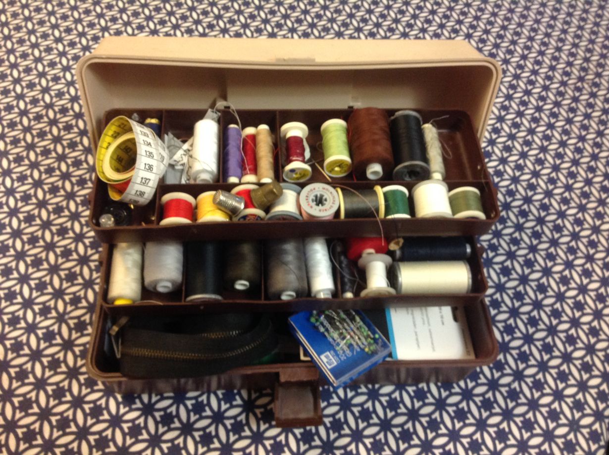 Tuli käytyä nuorena likkana kotiteollisuuskoulun ompelulinja. Lankojen, neulojen, sormustinten, vetskareiden ja muun sälän säilyttämiseen löytyi ompelupakki. Nykyisin pakki asuu kodinhoitohuoneen kaapissa ja on käytössä yhä harvemmin.