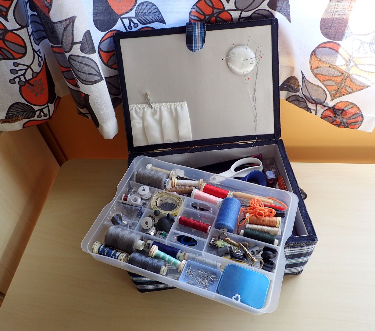 Ompelurasiani olen hankkinut vasta aikuisiällä. Se alkaa olla jo täynnä kaikenlaista tarviketta.