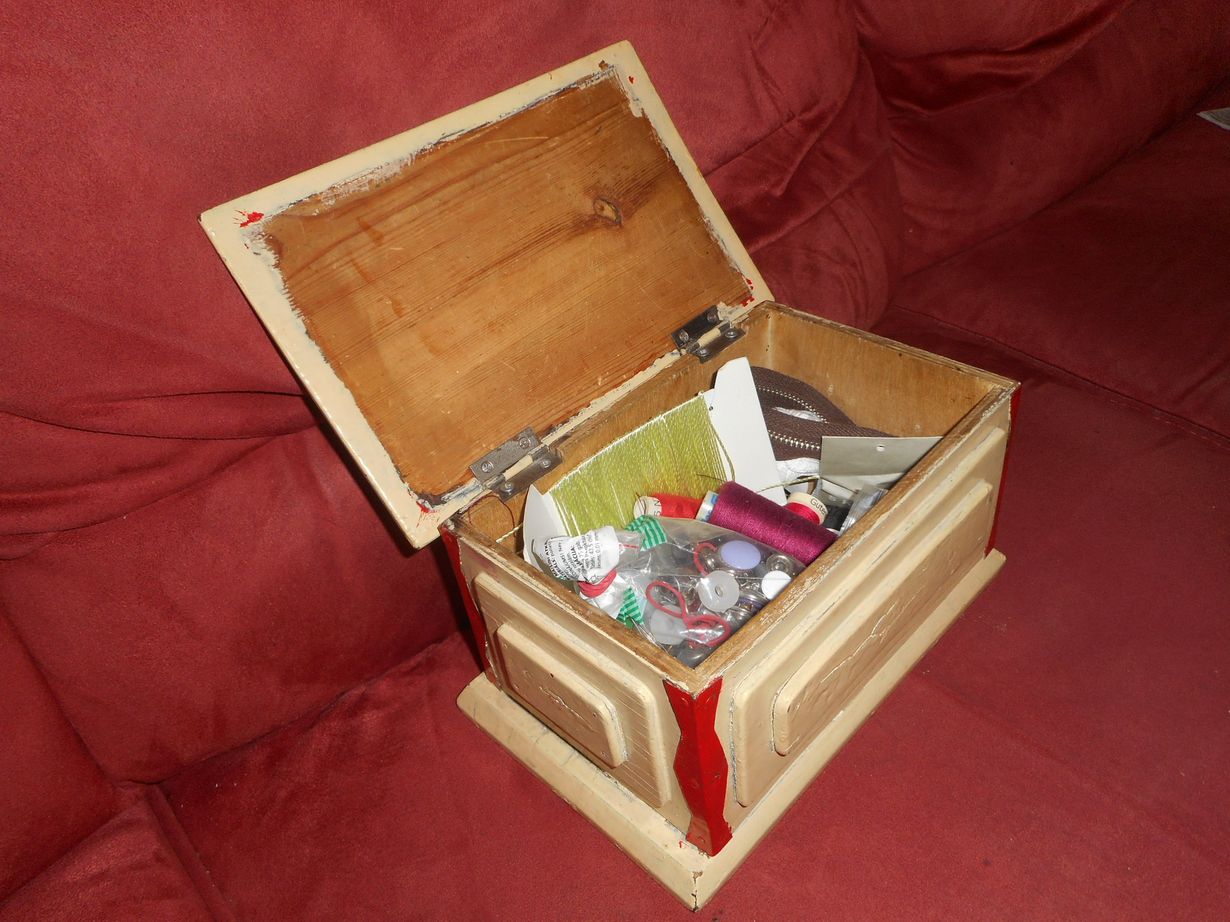 ompelurasia on isäni tekemä äidilleni 50-60 luvulta, rasia on tukeva puurasia ja se on säilynyt hyvänä, ja nykyään se on vaimoni käytössä ompelurasiana