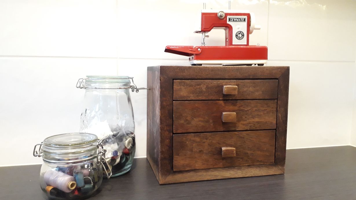 Oma ompelurasiani on pieni laatikosto, minkä sain isoäidiltäni. Isoäiti toimi pukuompelijana. Hänellän oli oma pieni ompelimo omakotitalon vintillä ja tuloilla talouteen ostettiin 1950-luvun alkupuolella se ensimmäinen auto ja isoäitini ajoi perheessä ensimmäisenä ajokortin. Se oli harvinaista siihen aikaan!