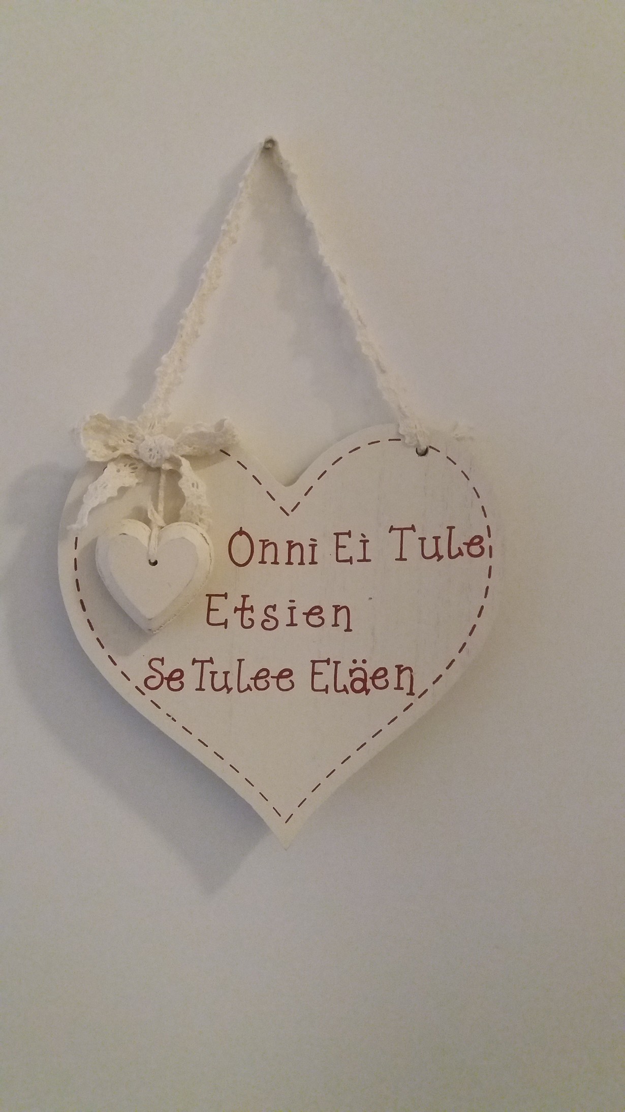 Kuulin tämän mietteen joskus muinoin ja minusta se oli täydellinen. Se jäi mieleeni ja kerran kirpputorilla törmäsin tähän kylttiin ja pakkohan se oli kotiuttaa. Tämä mietelause kulkee arjessani nykyään aina ♡