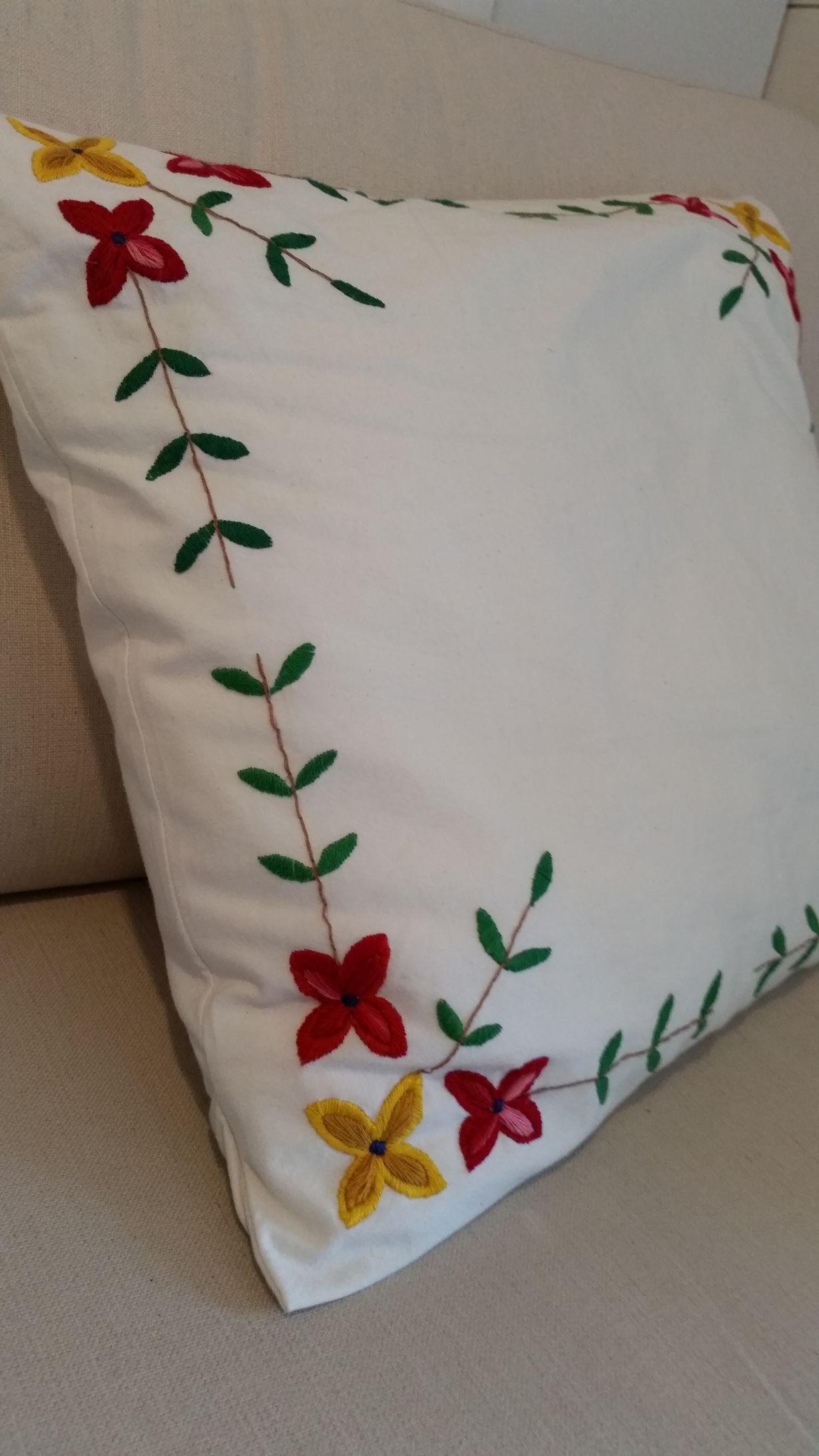 Olen aina ihaillut Mummoni kirjailutöitä, ja päätin tehdä opettajaopintojeni käsityökurssin lopputyönä kirjaillun tyynyn. Matkustin pohjoiseen saadakseni Mummolta parhaat vinkit. Olen ylpeä lopputuloksesta mutta eniten mieltä lämmittää muisto minusta ja Mummosta istumassa kylkikyljessä selaamassa käsityölehtiä ja hakemassa inspiraatiota tyynyn kuviolle.