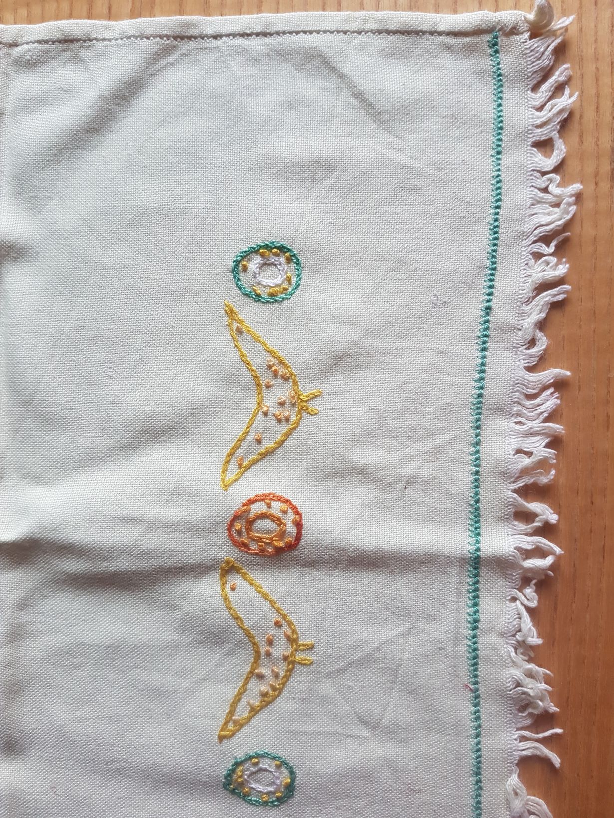 Miten ihanaa oli välitunnilla pelata pesäpalloa mutta käsityötunnille oli mentävä. Likaisin hikisin käsin yritin väkertää pikku lankapallukoita ja reunoille reikiä vielä toukokuussa. Liina ei ollut valmistunut pääsiäiseksi, tekeminen oli alusta loppuun yhtä tuskaa!