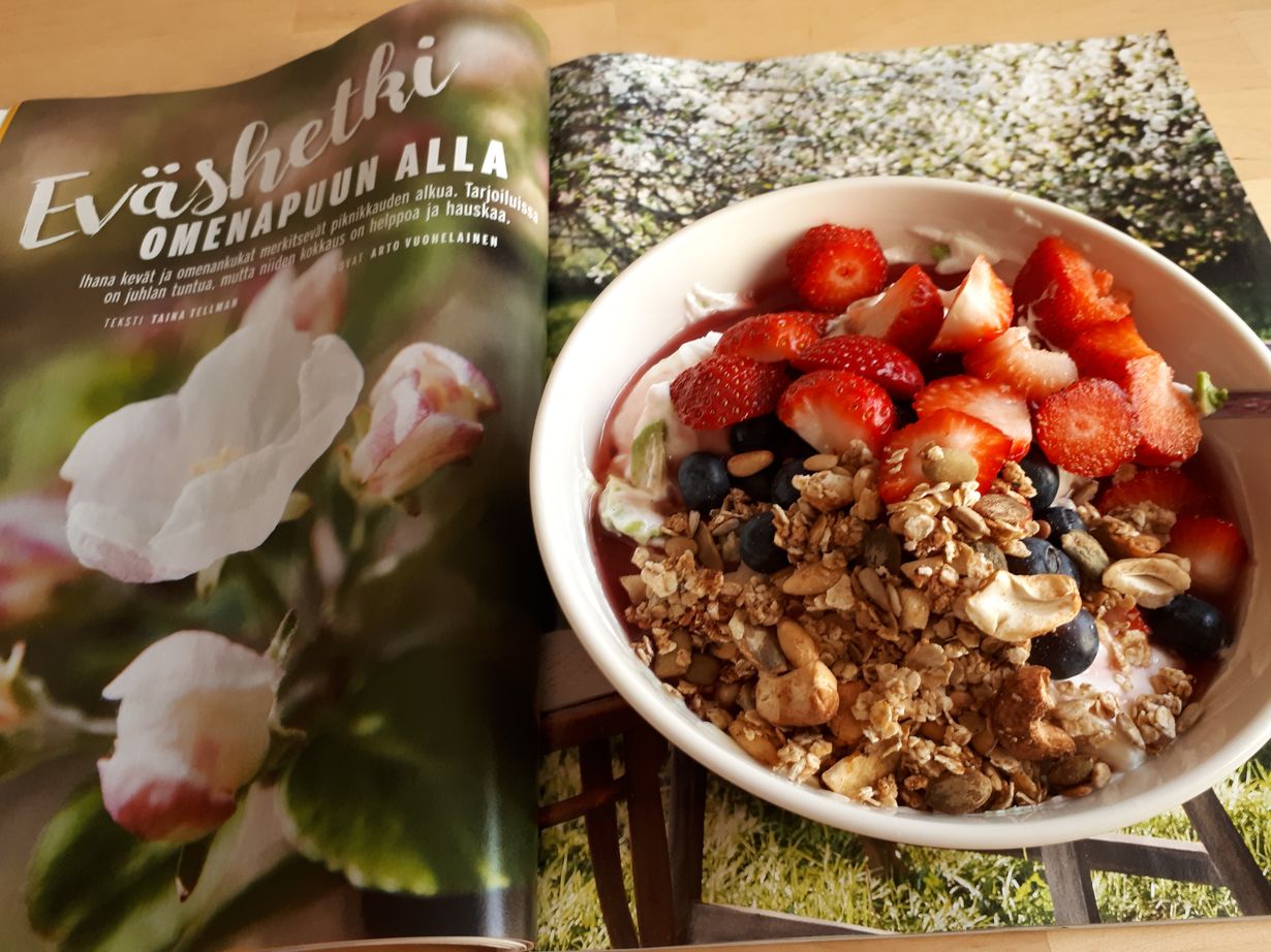 Mikään ei aloita päivää paremmin kuin kulhollinen rahkaa ja tuoreita marjoja. Lisäksi vielä siemeniä ja pähkinöitä. Saa puhtia päivään!