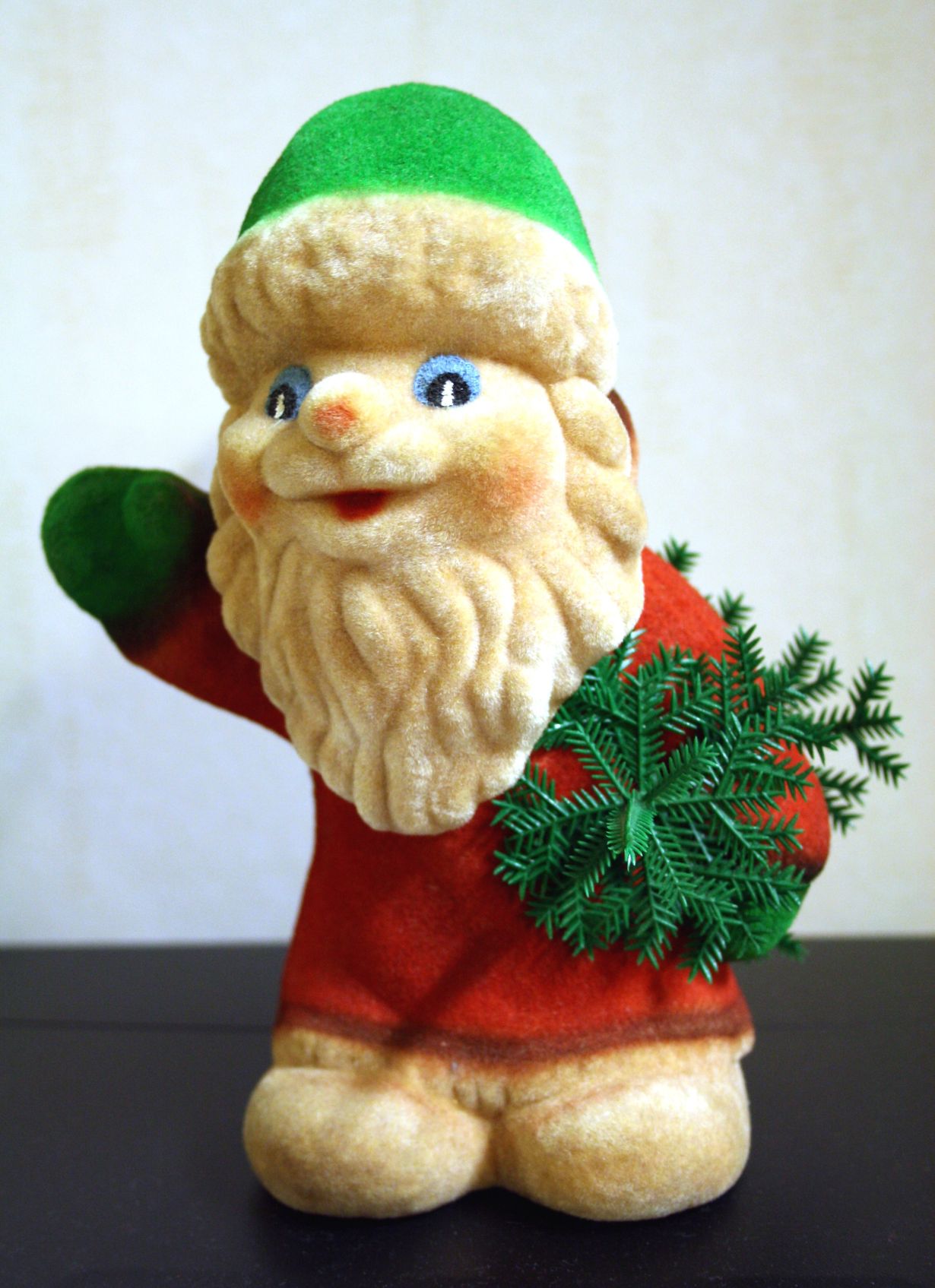 Pidän vanhoista joulukoristeista ja ihanin on tämä 70-luvulta peräisin oleva Neuvostoliiton aikainen samettipintainen tonttuhahmo. Se nostetaan jo hyvissä ajoin ennen joulua pöydälle tervehtimään.
