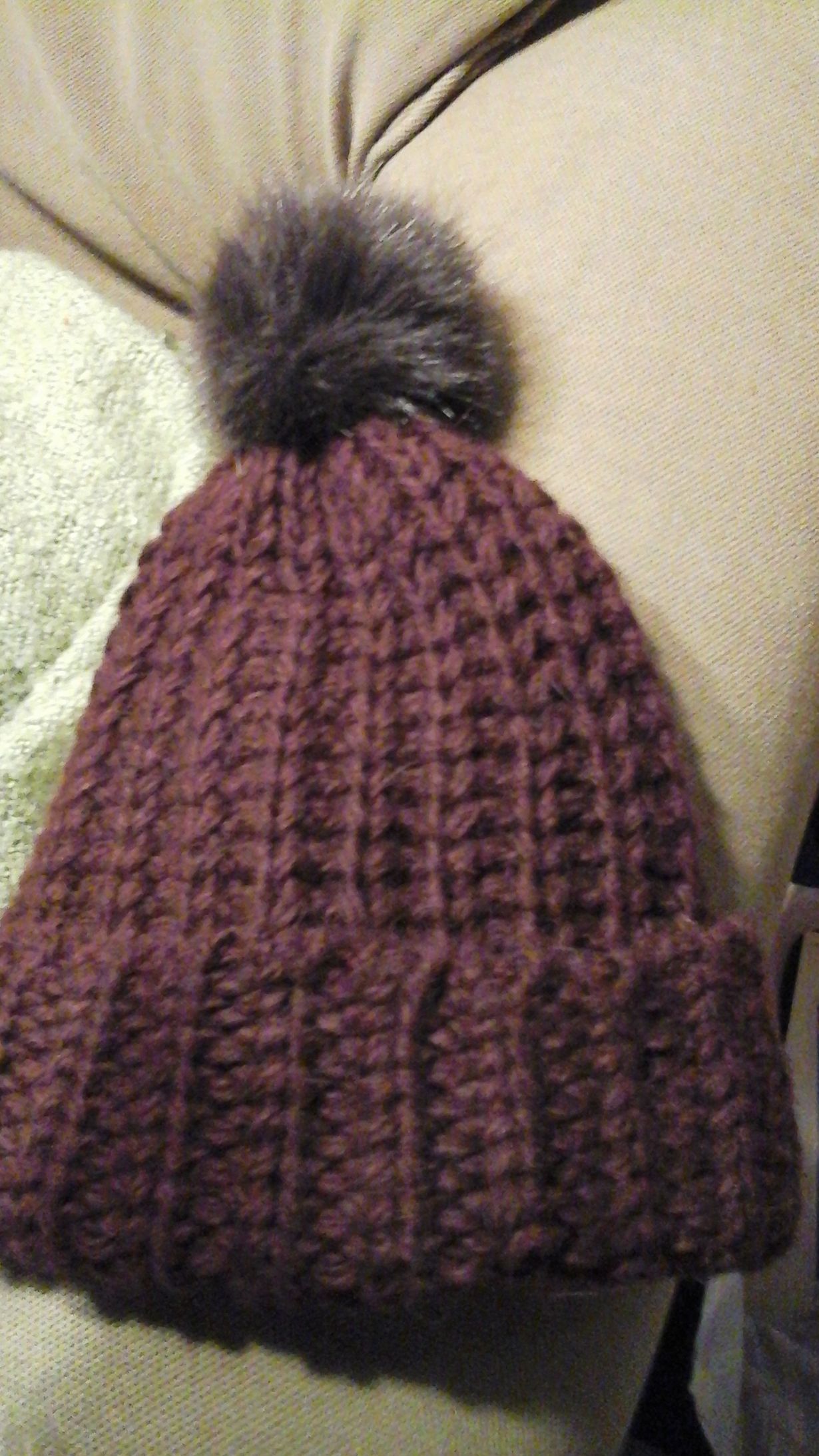 Tämä pipo on lämmin, ja tupsu ihanan pehmeä. Pipo on samaa sävyä takin kanssa