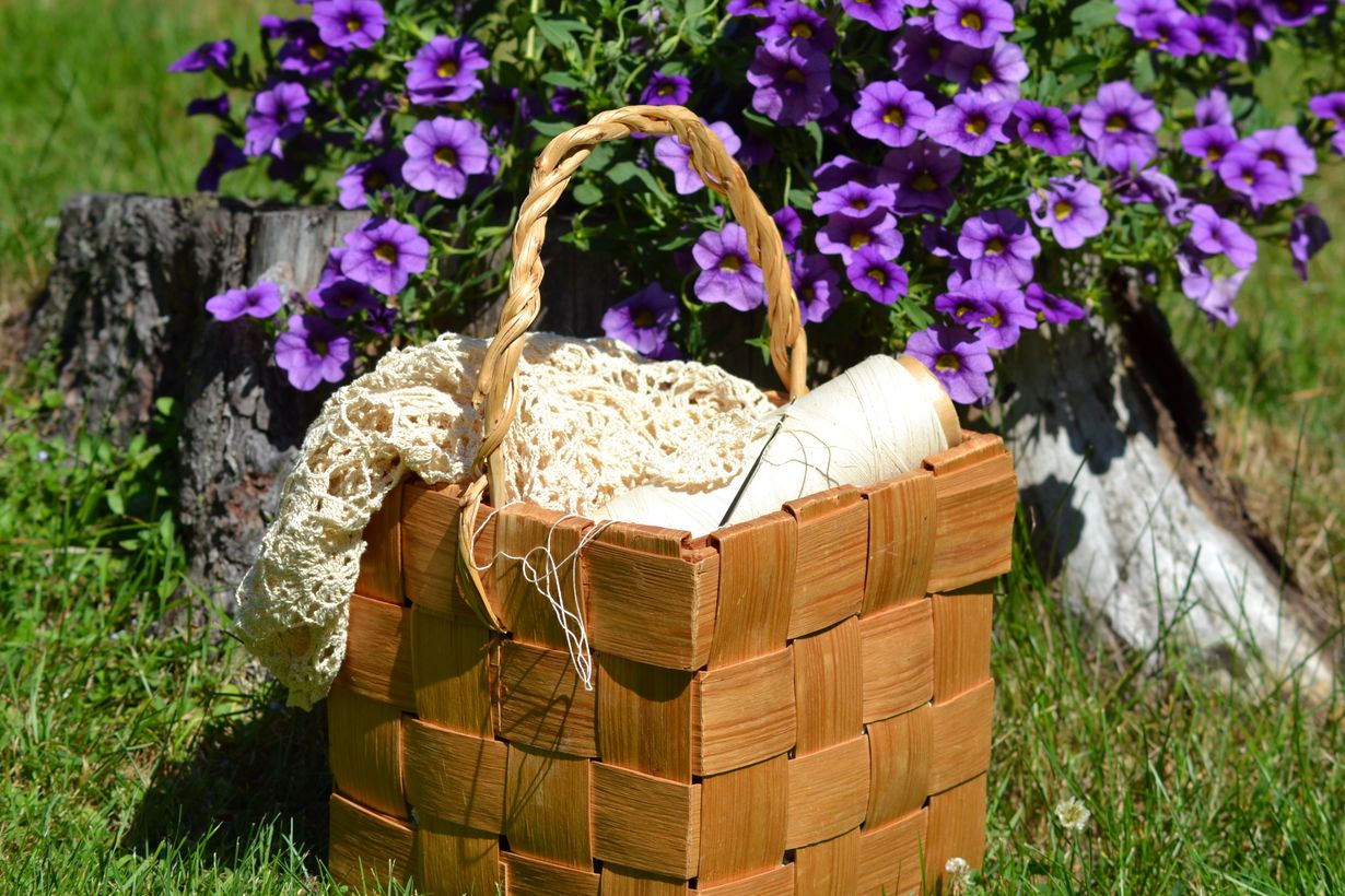 Ostin korin torilta jo kolmekymmentä vuotta sitten. Nykyään se on käytössä pääasiassa tekeillä olevan käsityön säilytyskorina, mutta loppukesästä se pääsee taas omenakorin virkaan.