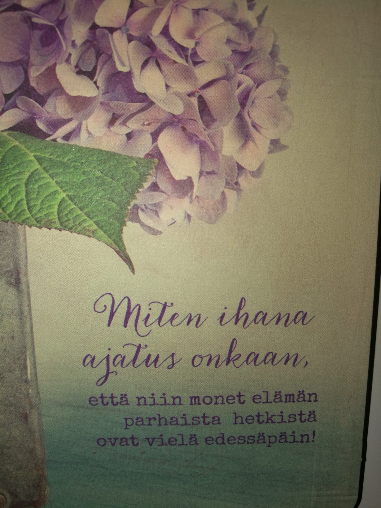 Kuvaa kotona näkyvä mietelause - voit voittaa Nespresson kahvikoneen Parhaat hetket Kirsi 8.5.2017 klo 22:10 Ystävän lähettämä onnittelukortti on mukavaa luettavaa, jos päivä ei ole ollut ihan onnistunut.