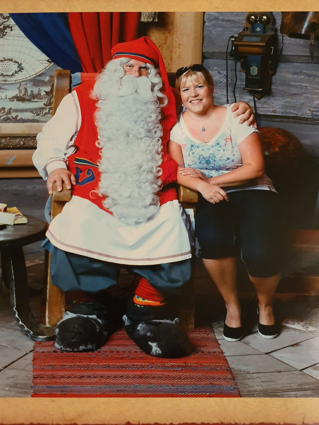 Pari vuotta sitten kesällä pääsin fanittamani joulupukin kainaloon kesälomareissulla - epäjouluisen mieheni murjottaessa nurkassa.