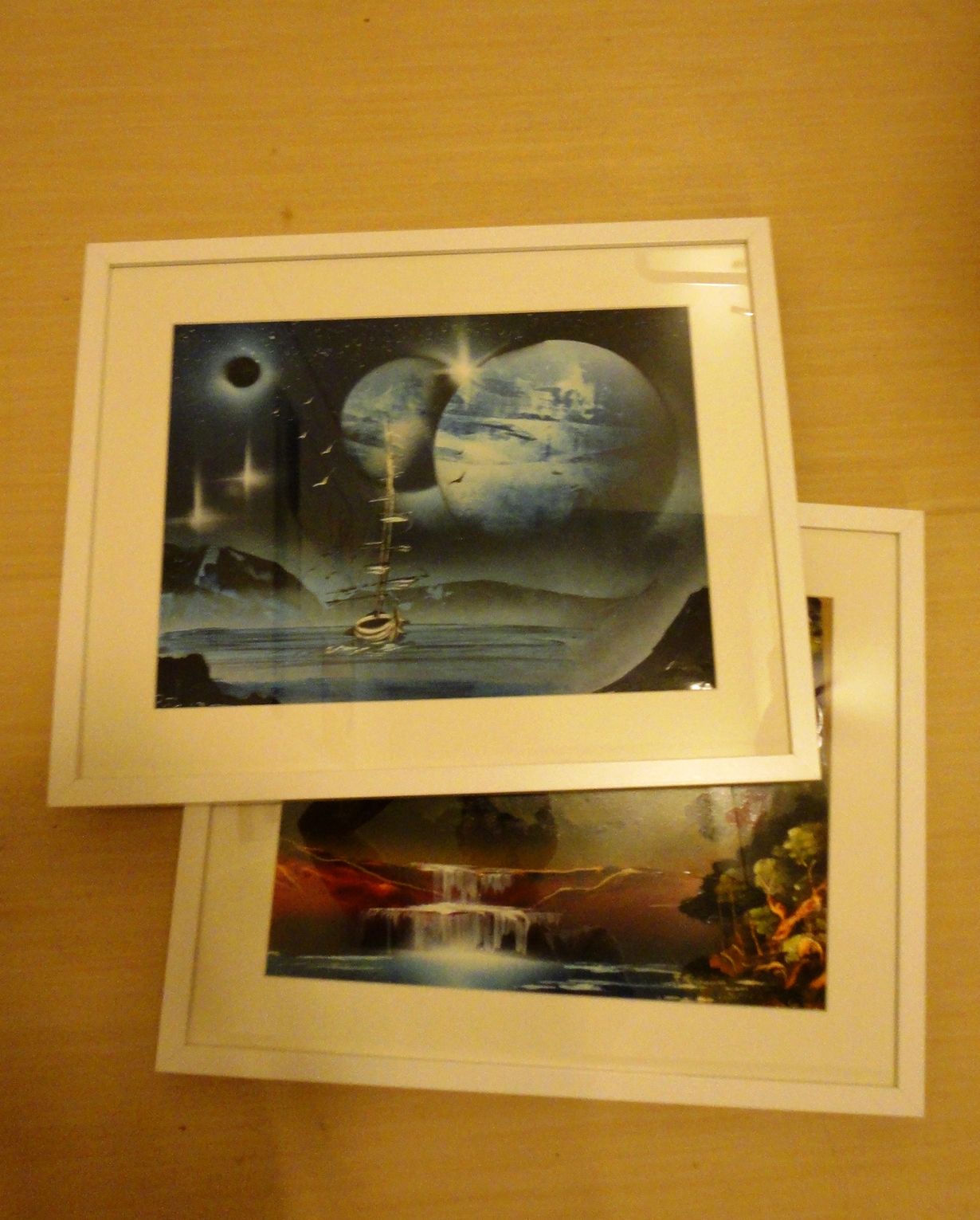 Oltiin vasta vähän ennen Ranskan matkaamme tutustuttu netissä "spray painting" -videoihin ja ihastuttu tekniikkaan. Pariisin kaduilla päästiin todistamaan taidetta ihan livenä ja pakkohan meidän oli maalaukset ostaa. Kehystetyt taulut odottelevat pääsyä uuden kodin seinälle jouluksi.