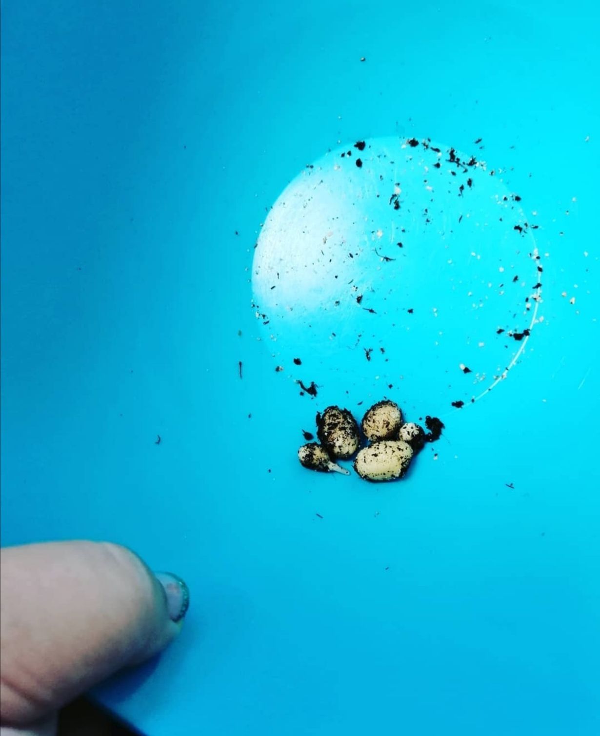 Kokeilin kasvattaa parvekkeella perunaa sankossa. Tässä sato. Keitin ja söin, tietenkin! Oli makoisaa, joskin ei tullut vatsa täyteen.