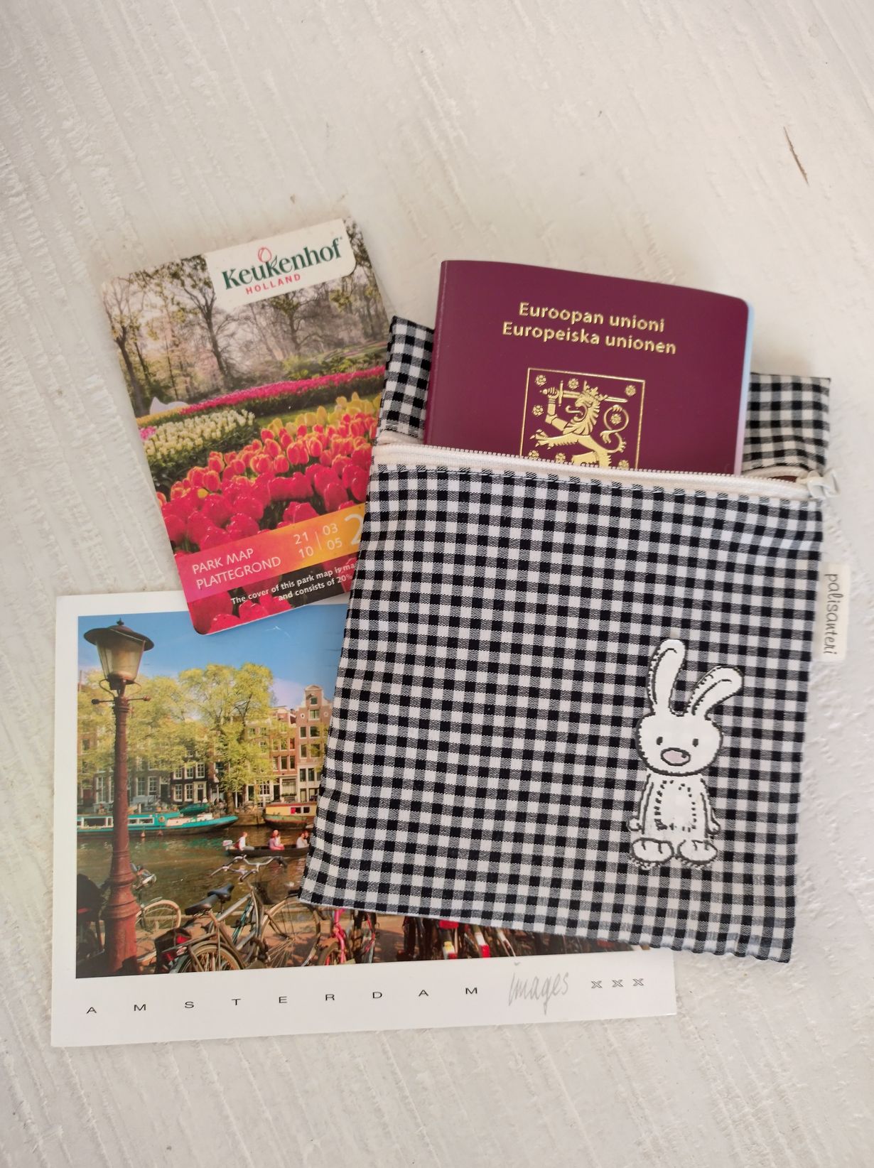 Passi pussukkaan ja pussukka reppuun ja maailmalle. Pussukka on torilta hankittu. Onnenpupu aina myös mukana.