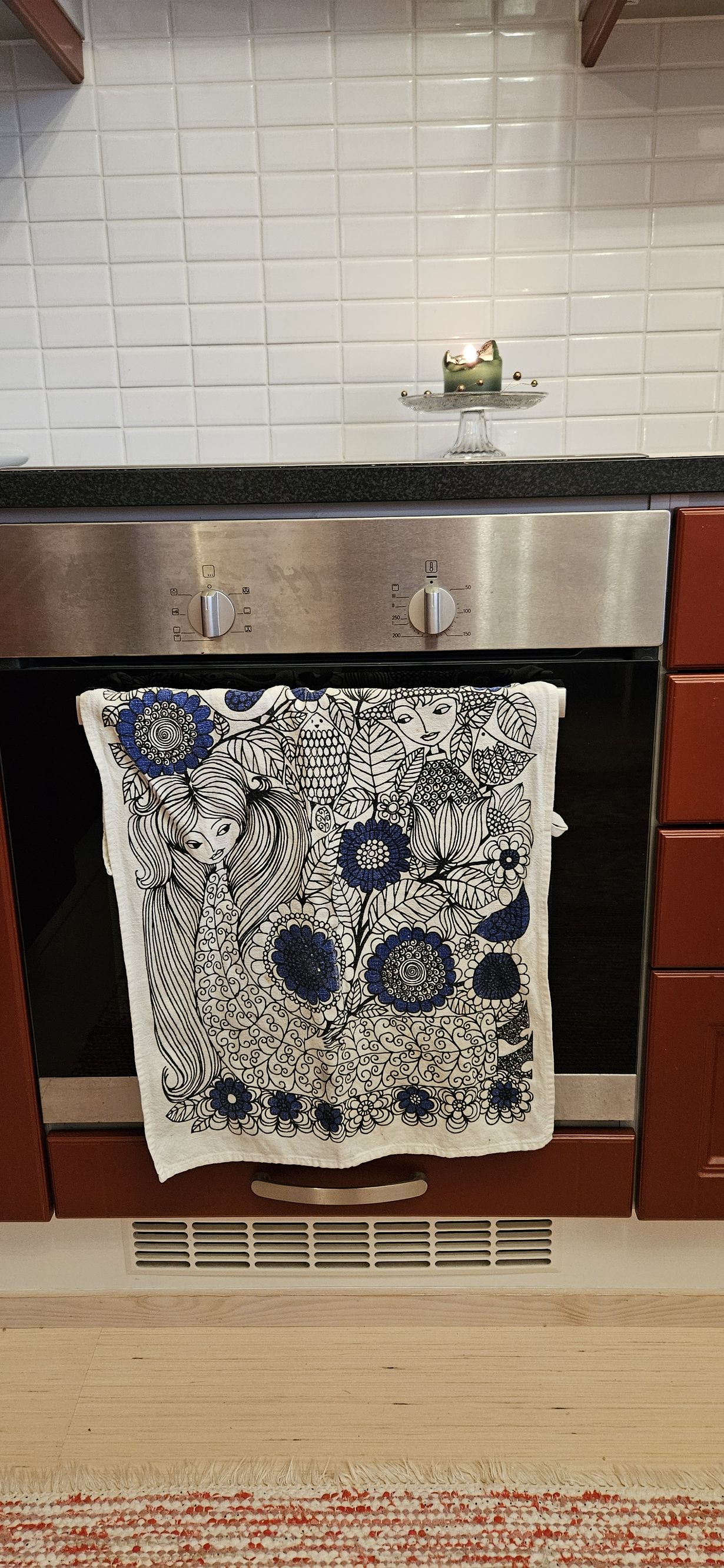 Entinen työkaverini, joka teki ystävällisen teon ja lahjoitti minulle erinäisiä tekstiilejä avioeron aikoihin vuonna 2020 ja tämä keittiöpyyhe on yksi niistä. Tämä on lempikeittiöpyyhkeeni, hienon kuvion ja kauniin muiston vuoksi.