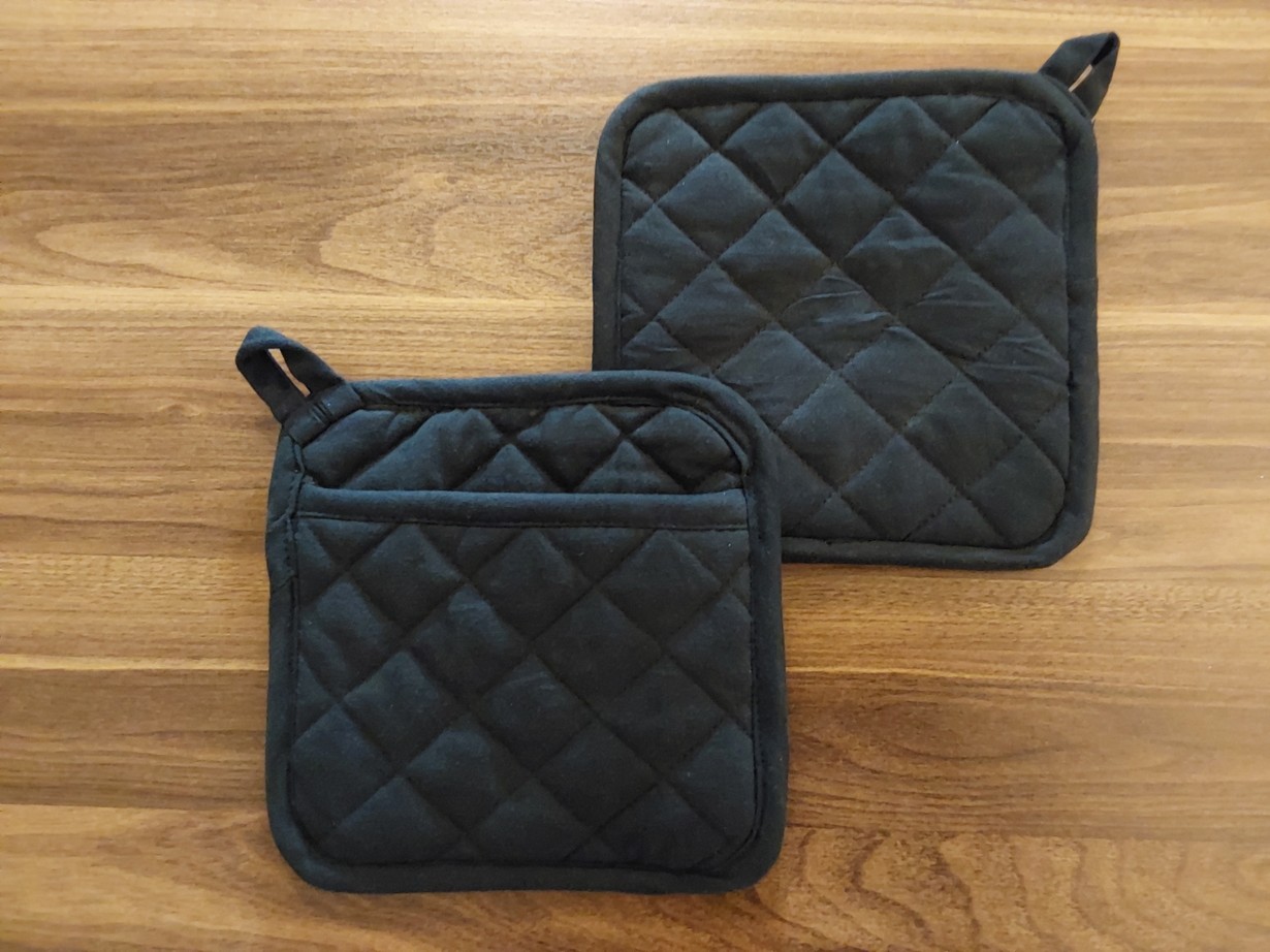 Ostin mustat Meradiso-patalaput Lidlistä vuosi sitten. Poikamieskeittiöön sopivat miehisen mustat patalaput ovat mukana kaikessa uunivuokaruoasta pizzaan. Patalaput ovat turvalliset ja suojaavat taskupatalaput.