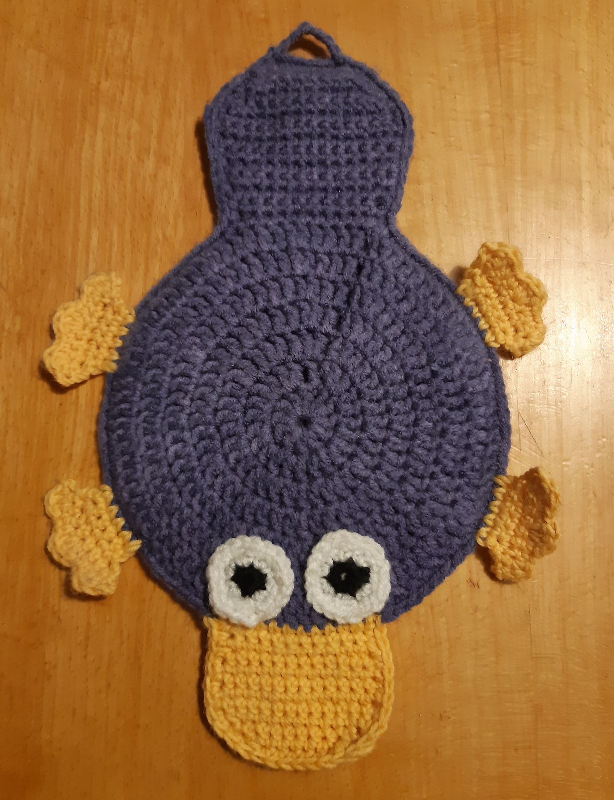 Lähetä kuvakisaan kuva patalapustasi - voita NOSH -lahjakortti! Patalappu Sari 16.11.2022 klo 16:23 Tyttäreni virkkaama pannulappu, vesinokkaeläin, asustelee keittiömme seinällä. Käyttöön en ole sitä raaskinut ottaa.