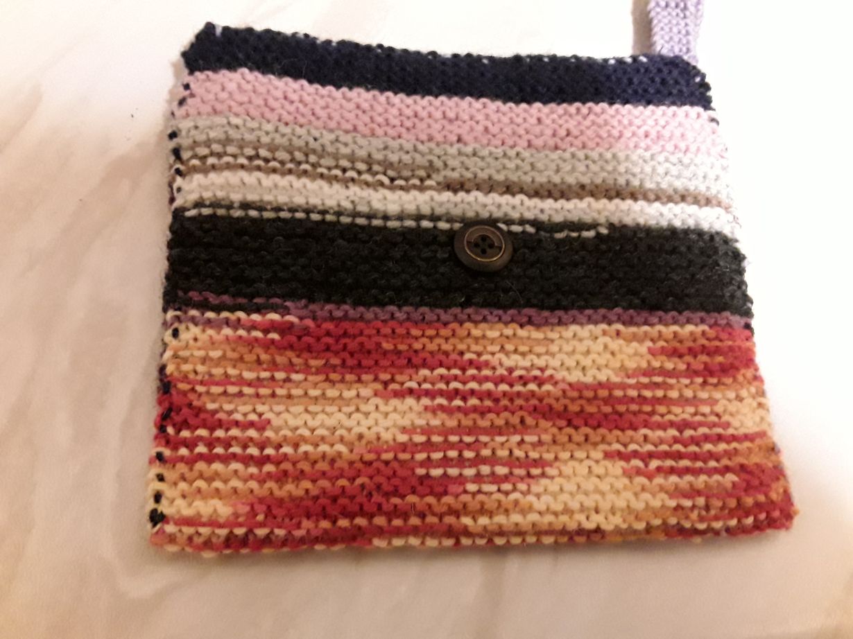 Näitä ihania kirjavia patalappuja syntyy keväällä kun sukat on neulottu ja jämänyttyrät päätyvät patalapuiksi, joita on kiva viedä tuliaisiksi.