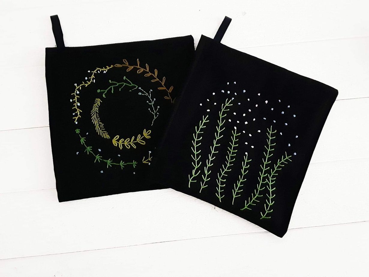Kummitytöllä jo kaikkea, mutta ei kummitädin kirjailemia patalappuja. Joten pitihän ne tehdä.