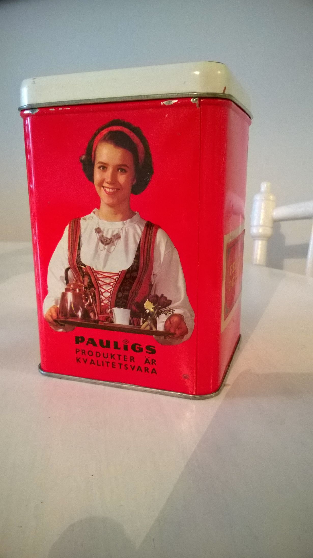 Sukulaiseni lahjoitti minulle vuosia sitten kirpputorilöytönsä, Pauligin perunajauhopurkin. Purkin kyljessä hymyilevä Paula-tyttö sai kodin Paula-opiskelijan huushollista ja on seurannut muutoissa uusiin koteihin. Perunajauhojen sijasta säilytän purkissa kahvia.