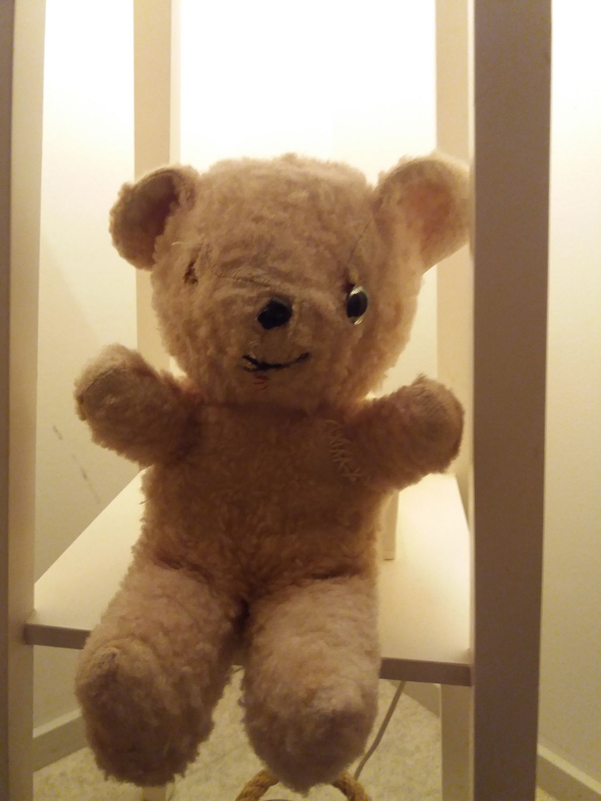 Vaaleanpunainen Prinsessa on jo yli 50-vuotias: puhkirakastettu ja moneen kertaan paikattu, kaljuuntunut seniori. Nykyään hän on arvolleen sopivalla paikalla, turvassa kolhuilta kirjahyllyn päällä Herra Ruutupöksyn vieressä.