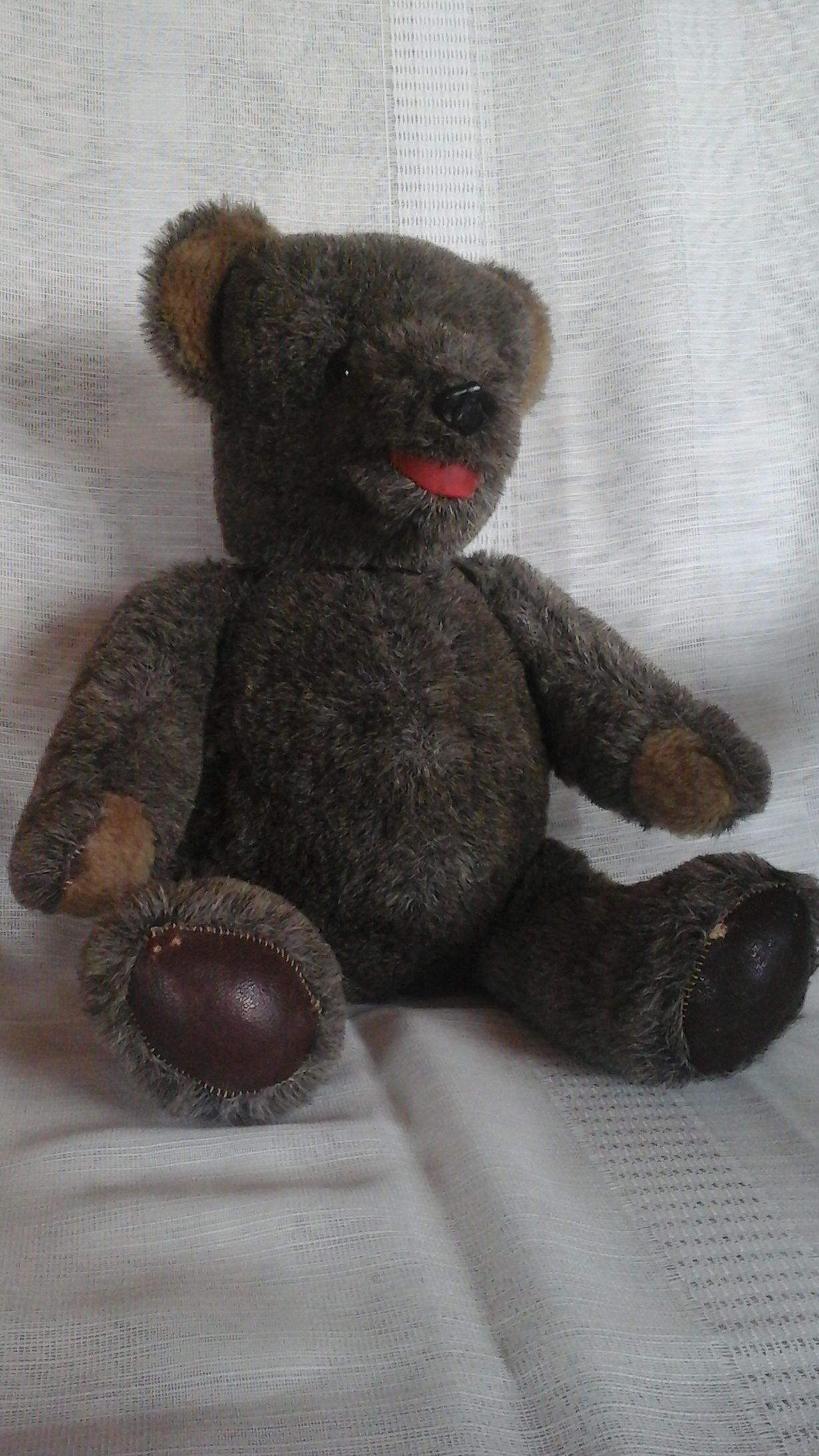 Tämän käsintehdyn, hymyilevän nallen sai äitini vuonna 1950. Nyt se on ilahduttanut minua jo vuosia.
