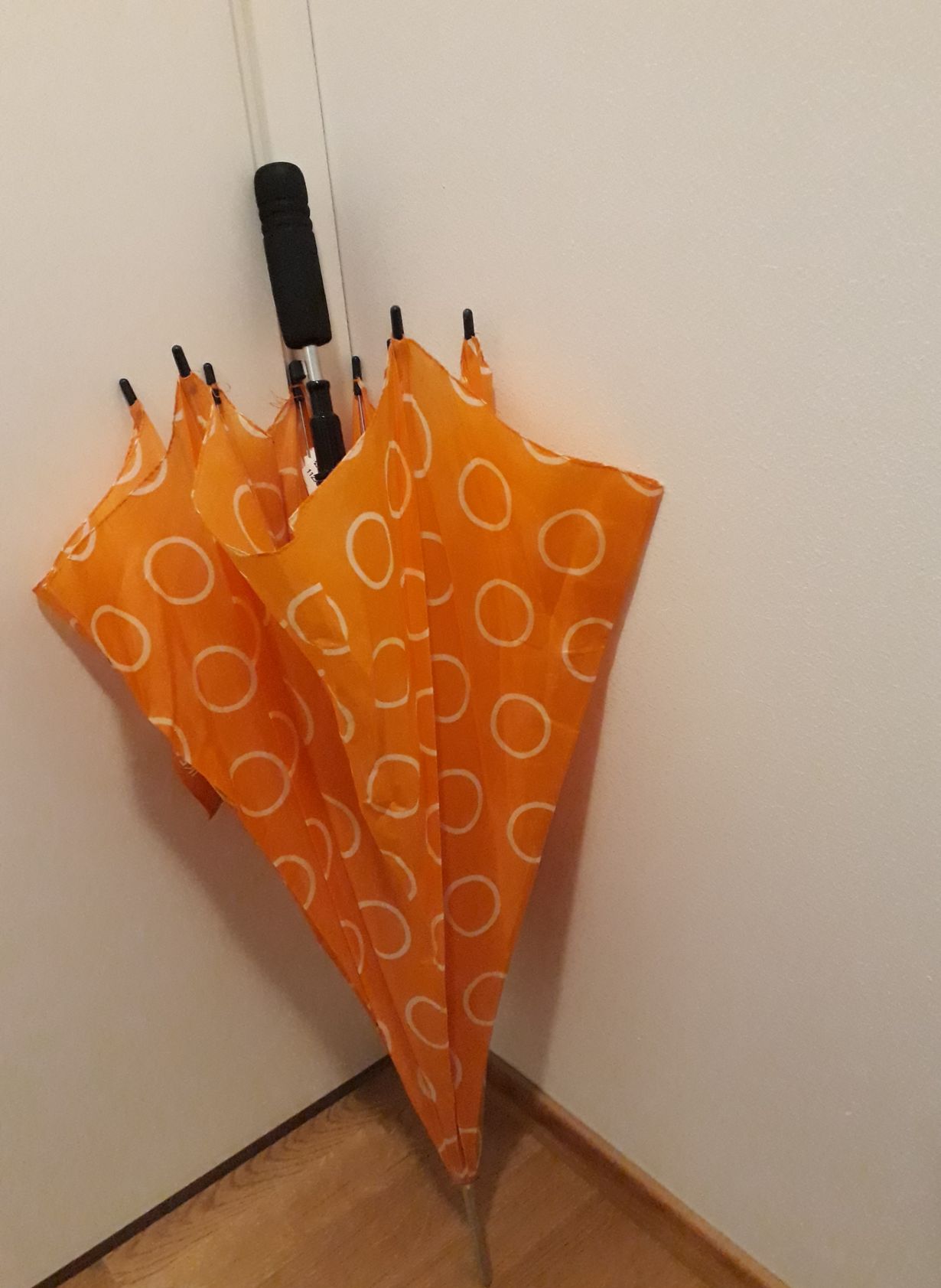 Tämä oranssi Ikean sateenvarjo pelasti minut pulasta, kun olin kylässä ja sadepäivä yllätti. Sain sen emännältä mukaan. Emäntä oli saanut varjon samalla tavalla. Pitää pistää hyvä kiertämään.