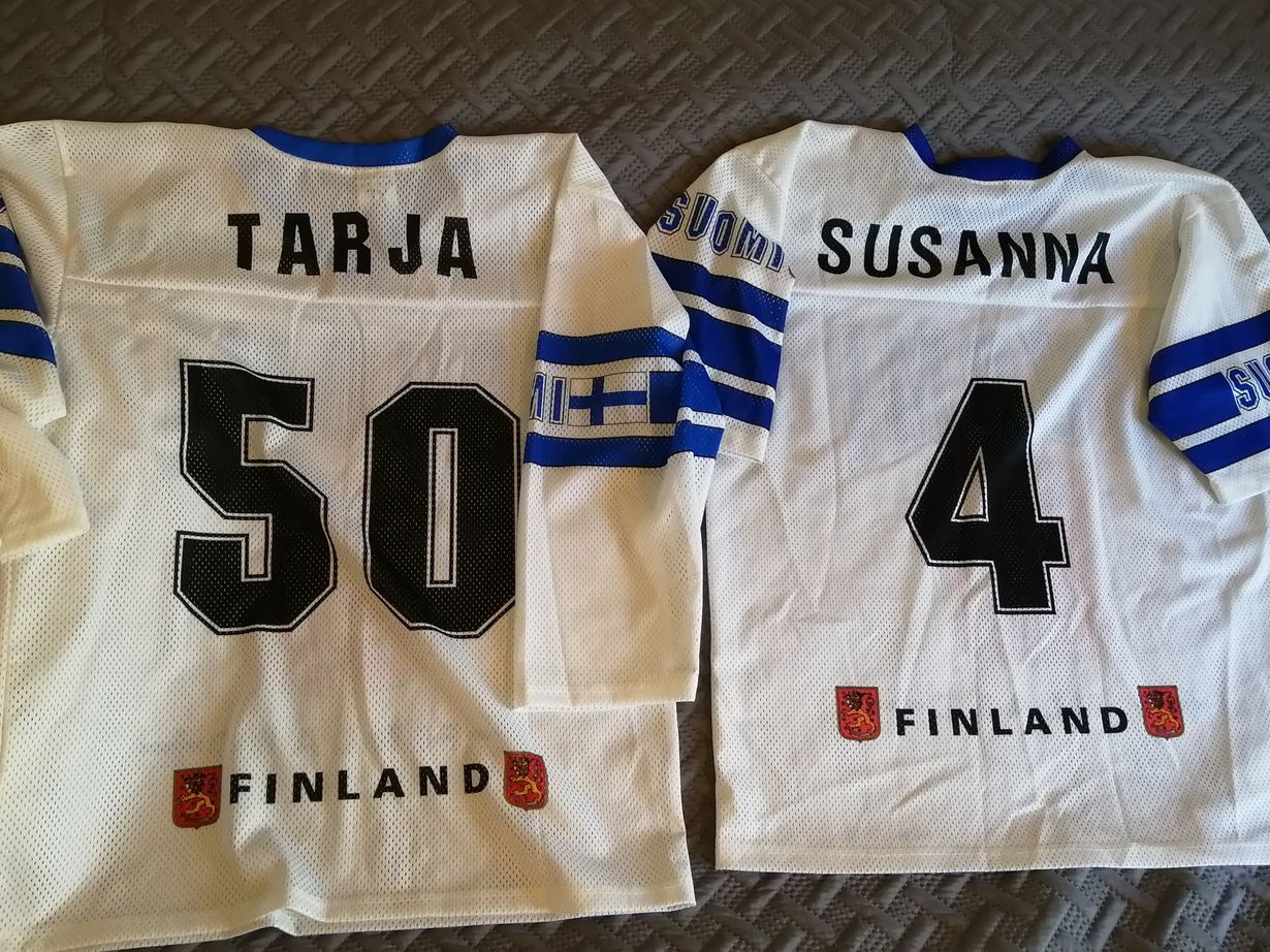 Vuonna 95 Tarja-äitini täytti 50 ja minä olin töissä Hämeenlinnalaisessa pubissa jonka kautta pelipaitoja pystyi tilaamaan. Mm-voiton innostamina me kannustajatkin tilattiin paidat. En ole raaskinut hankkiutua näistä eroon vaikka ovatkin jo monta kymmentä vuotta olleet hyllyn nurkassa!
