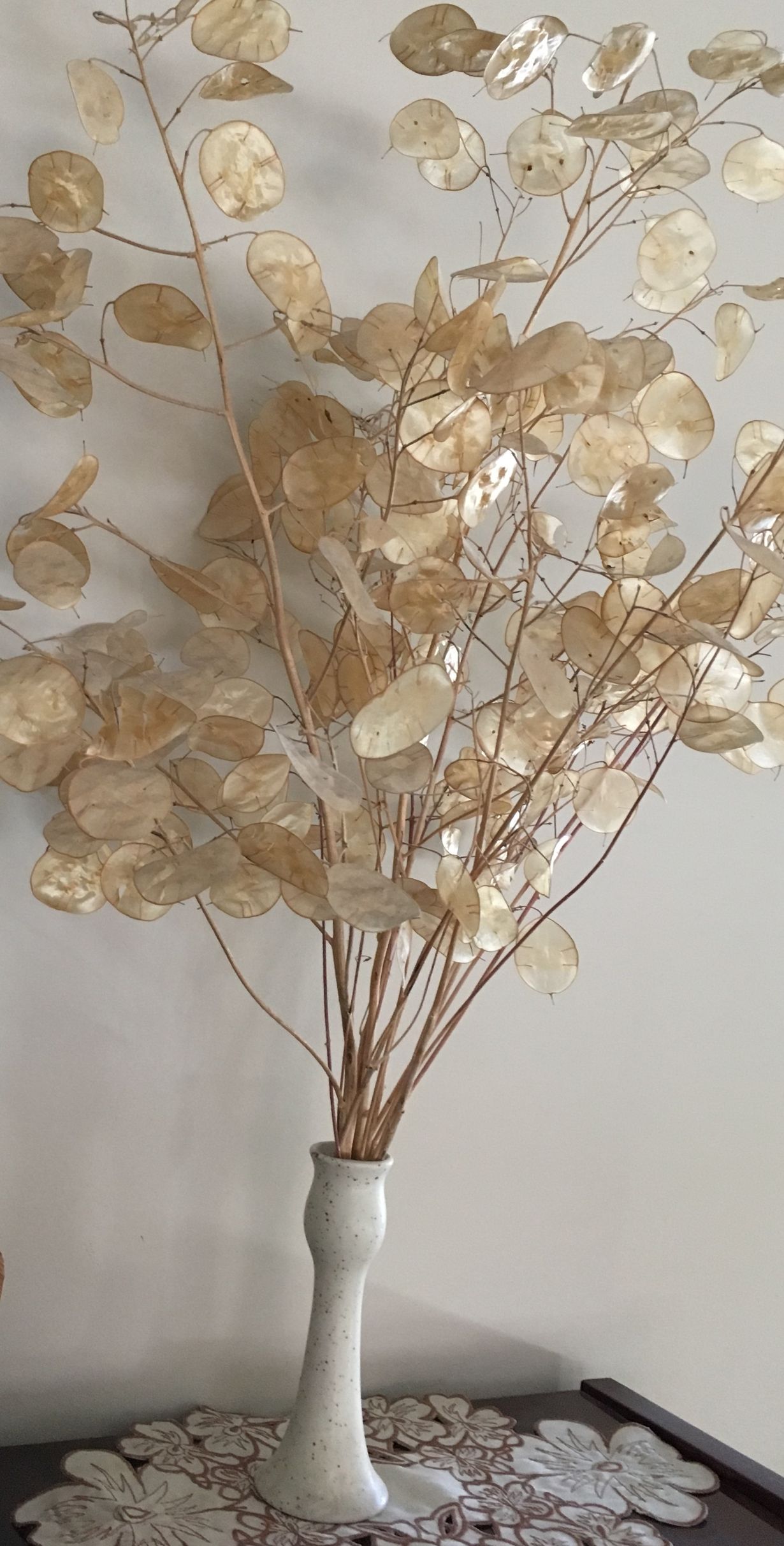 Äidin kuivattamat kukat vieläkin tallessa häälahjaksi 35v sitten saadussa Pentikin vaasissa.