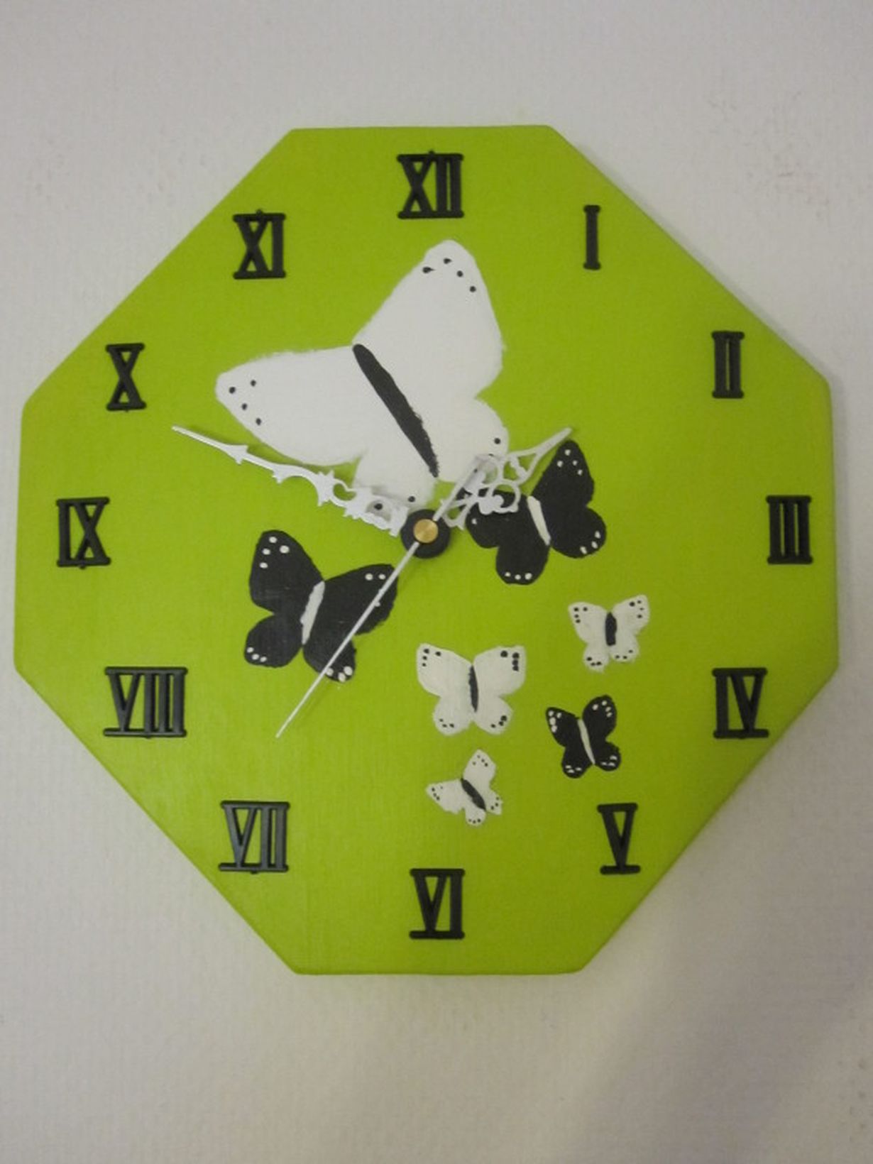 Tämän ihanan kesäisen kellon on tehnyt tyttäreni Lotta 12-vuotiaana koulun käsityötunnilla, toista samanlaista ei siis löydy.