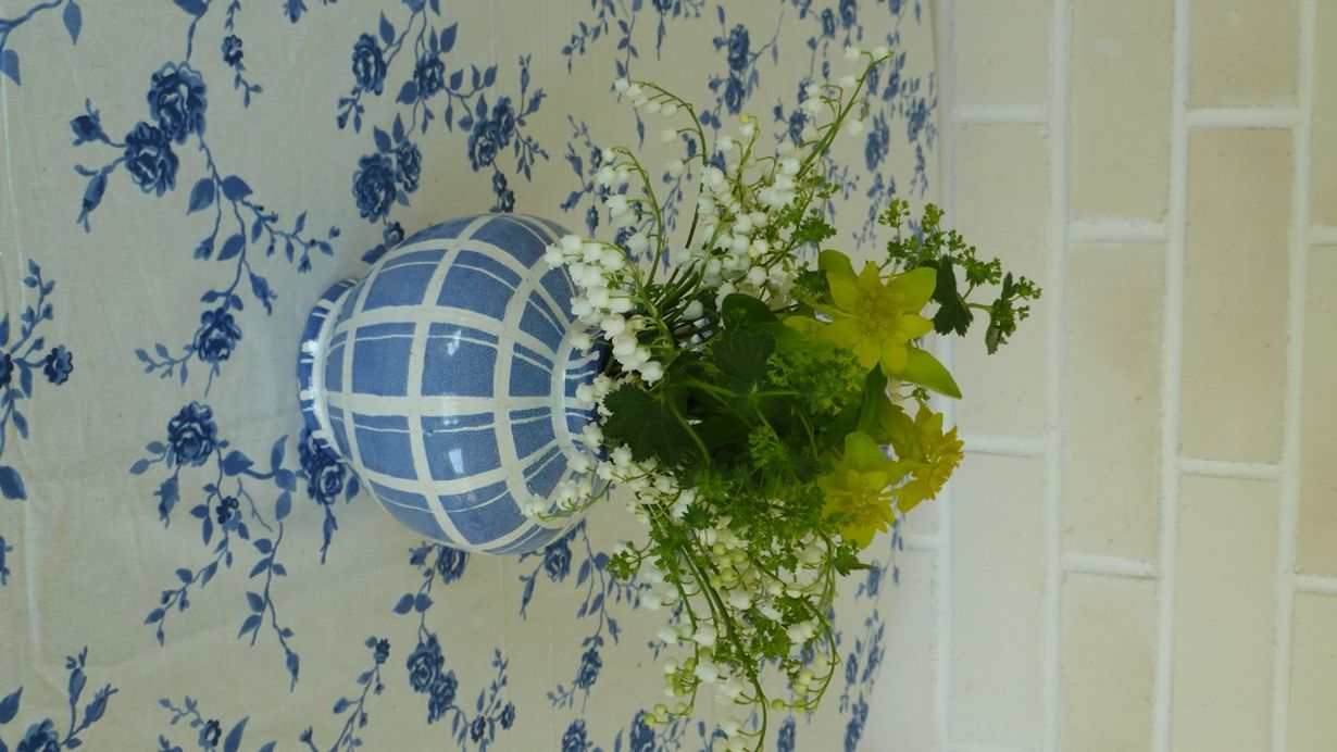 Lapsuudenkodista äidin minulle antama vanha käsinmaalattu keraaminen maljakko, 1950-luvulla saatu kummitätini perintöä,klassisen kaunis ajasta aikaan.