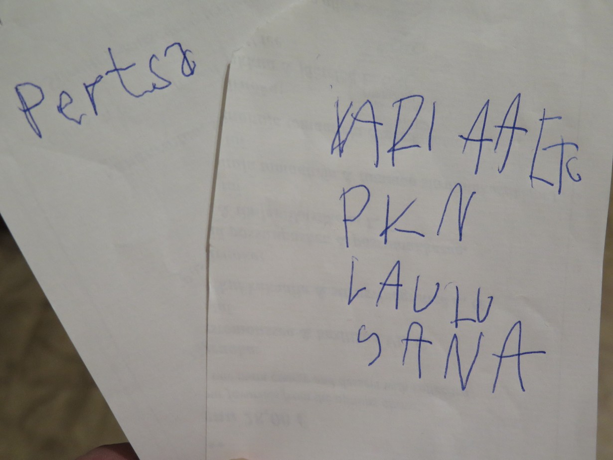 Pertti Kurikan pojat olivat keikalla Hämeenlinnassa ja syömässä ravintolassa jossa olen töissä. Heillä oli vähän kiire aikataulu ja piti saada jälkiruoka nopsaan pöytään että ehtivät laulamaan. Kylmäkkö vitsaili että ehtona on nimikirjoitus. Minähän esitin leikillisesti asian että nimmari tähän niin jälkkäri tulee nopeasti. Pojat oli juonessa mukana heti.
