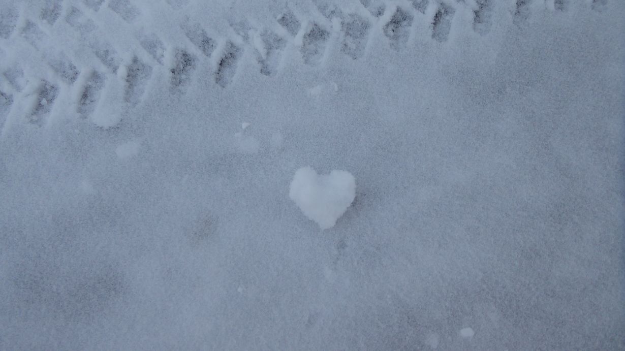 Pieni lumisydän tiellä