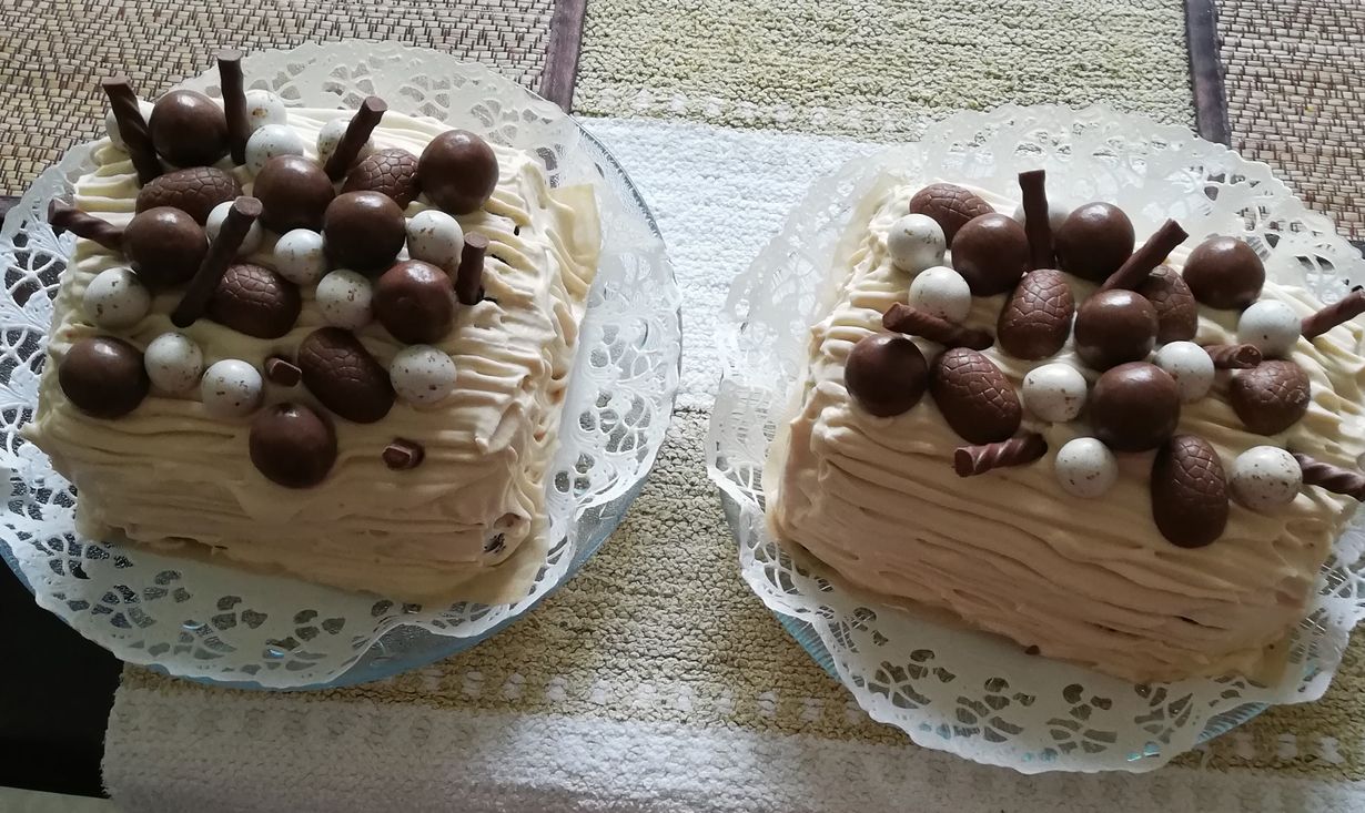 Kääretortusta syntyi pikakakut - toinen jäi minulle ja miehelleni ja toisen vein äidilleni.