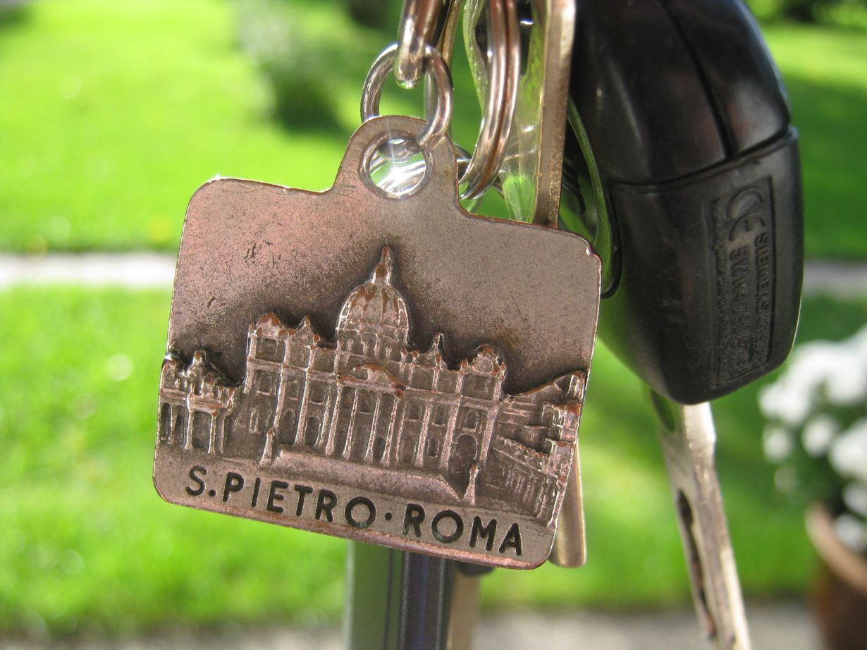 Tämän avaimenperän ostin Pietarinkirkosta, ensimmäiseltä matkaltani Roomaan parhaiden ystävieni kera. Nyt se muistuttaa päivittäisessä käytössä ihanasta matkasta.