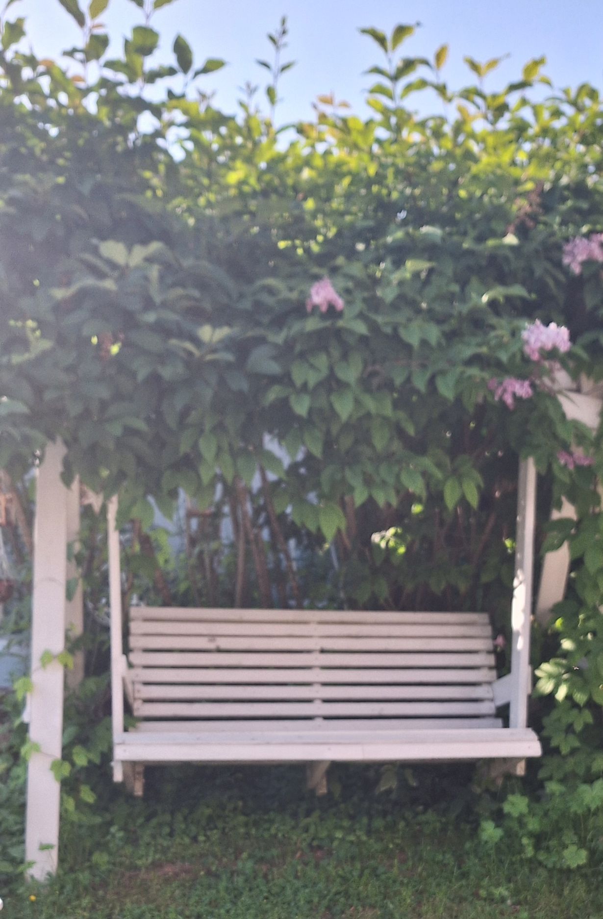 Lähetä kuvakisaan kuva pihakeinustasi - voita Lapuan Kankureiden villahuopa Pihakeinu Mari 26.6.2025 klo 18:54 Mieheni rakensi keinun vuosia sitten,istahdan,kun kaipaan varjoa.