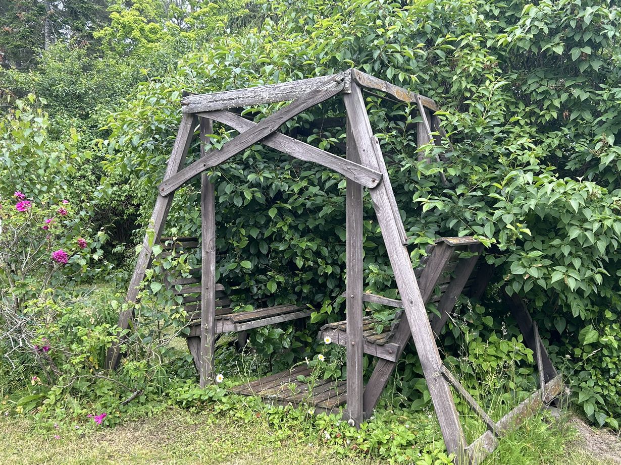 On ollut pihakeinu liian vähäisellä käytöllä, kasvit vallanneet rauhassa istumapaikat.