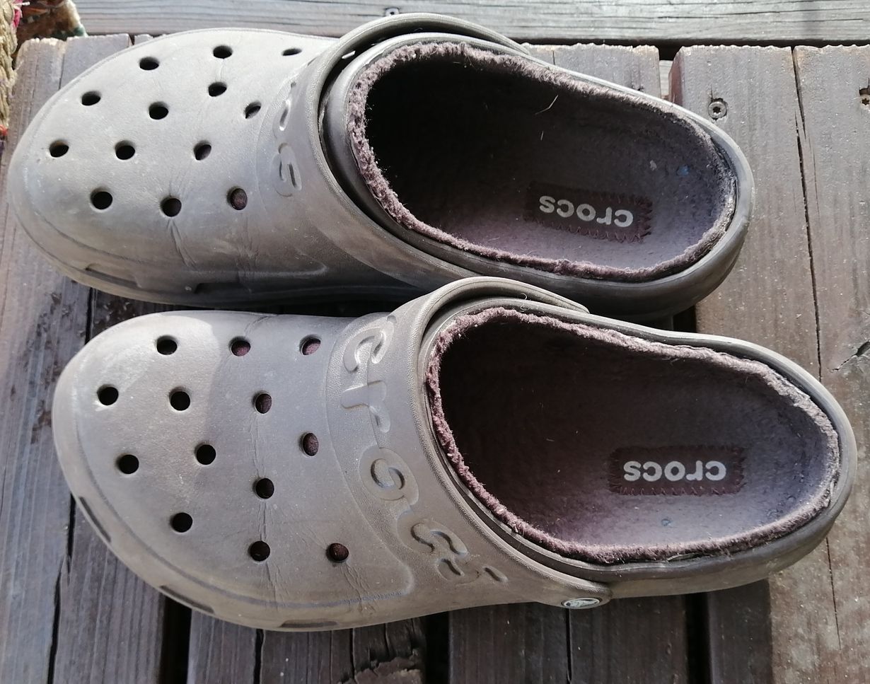 Kuvassa isännän talvicrocsit joita tulee lainattua... Tosin tulee kehoitus hommata omat 🙈