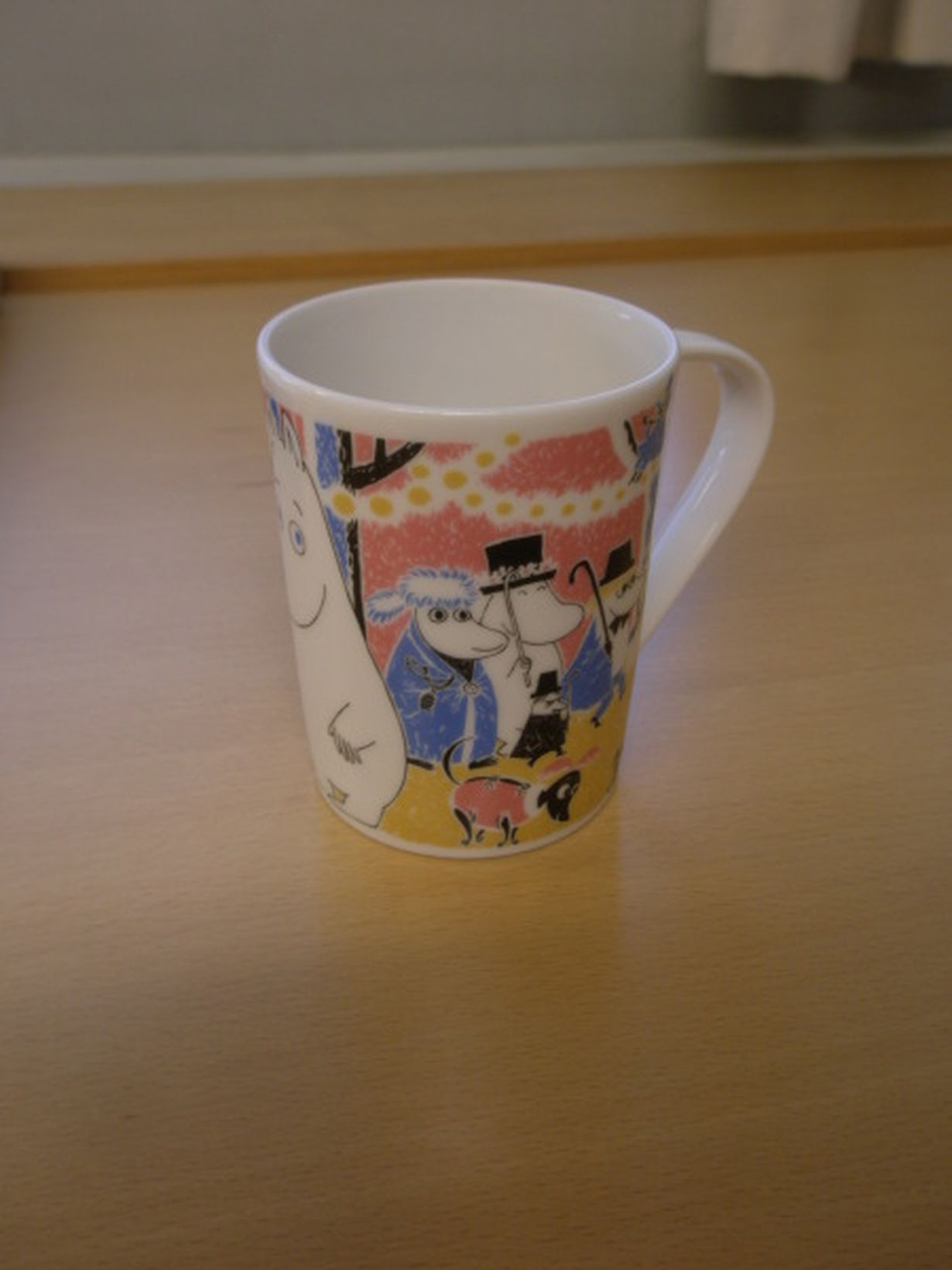 Olen ostanut rakkaan kahvimukini netin kautta Japanista. Muki on valmistettu Japanissa Muumien 60 vuotisjuhlan kunniaksi. Pian mukin ostamisen jälkeen lähdimmekin tyttären kanssa Japaniin! Hyvä reissu ja muki muistuttaa siitä. Ja kahvi vaan maistuu siitä niin hyvältä - muki on työpaikallani josta juon aina aamukahvini. Mukia on todella hyvä pitää kädessä - korva on juuri sopiva ja pinta pehmeä!