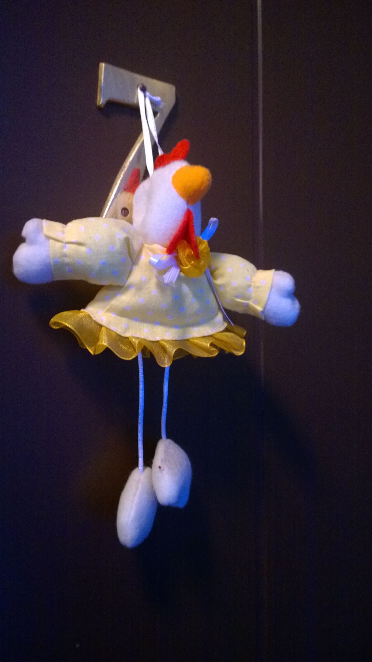 Muutaman vuoden vanha pikku kananen päätyy ulko-oveemme joka vuosi kevään korvilla ennen pääsiäistä, ja yleensä se "unohtuu" siihen koko loppuvuodeksi, kunnes tulee aika kaivaa tonttu tomera ovea vartioimaan.