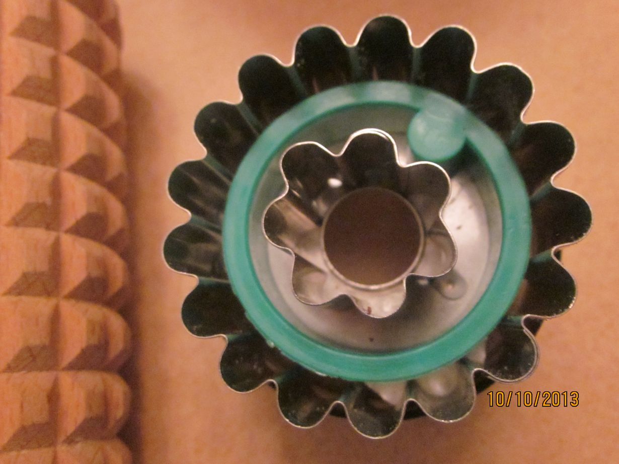 Tämä ihana arki: piparkakkumuotti pikku-kukka-muotti 10.10.2013 klo 22:09 muotissa toisella puolen vihreänuppinen vieteti, josta painetaan taikinalevyyn ja kas! pikku kukkanen syntyy katia