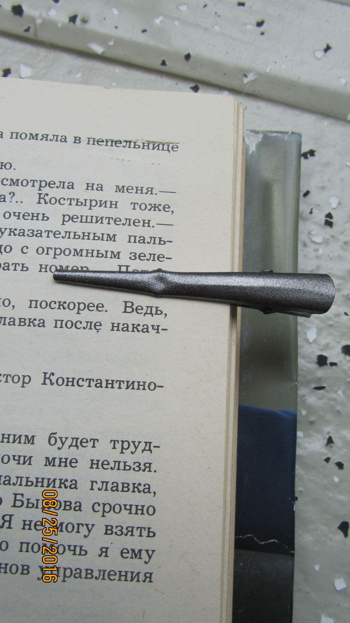 Kirjanmerkkini on hiuspinni. Sillä saa tarkasti merkittyä lukemansa rivin, vaikka sivu