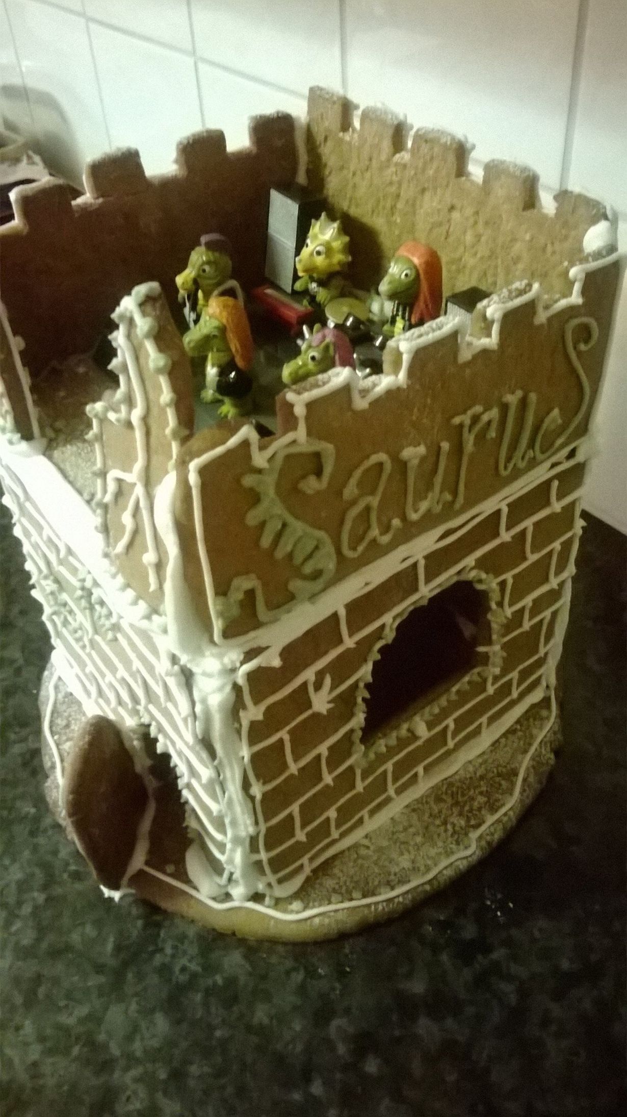 Hevisaurus-fanille leivottiin piparistage, jolta toivotetaan räyhällistä joulua.